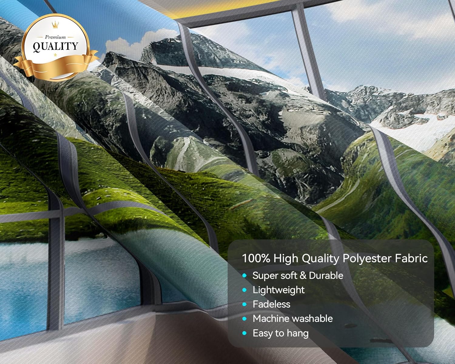 dueeia Window Tapestry Wall Hanging Mountain Forest Lake Nature Landscape Wall Tapestries for Bedroom Office Living Room Wall Decor (90.6"x70.9")
