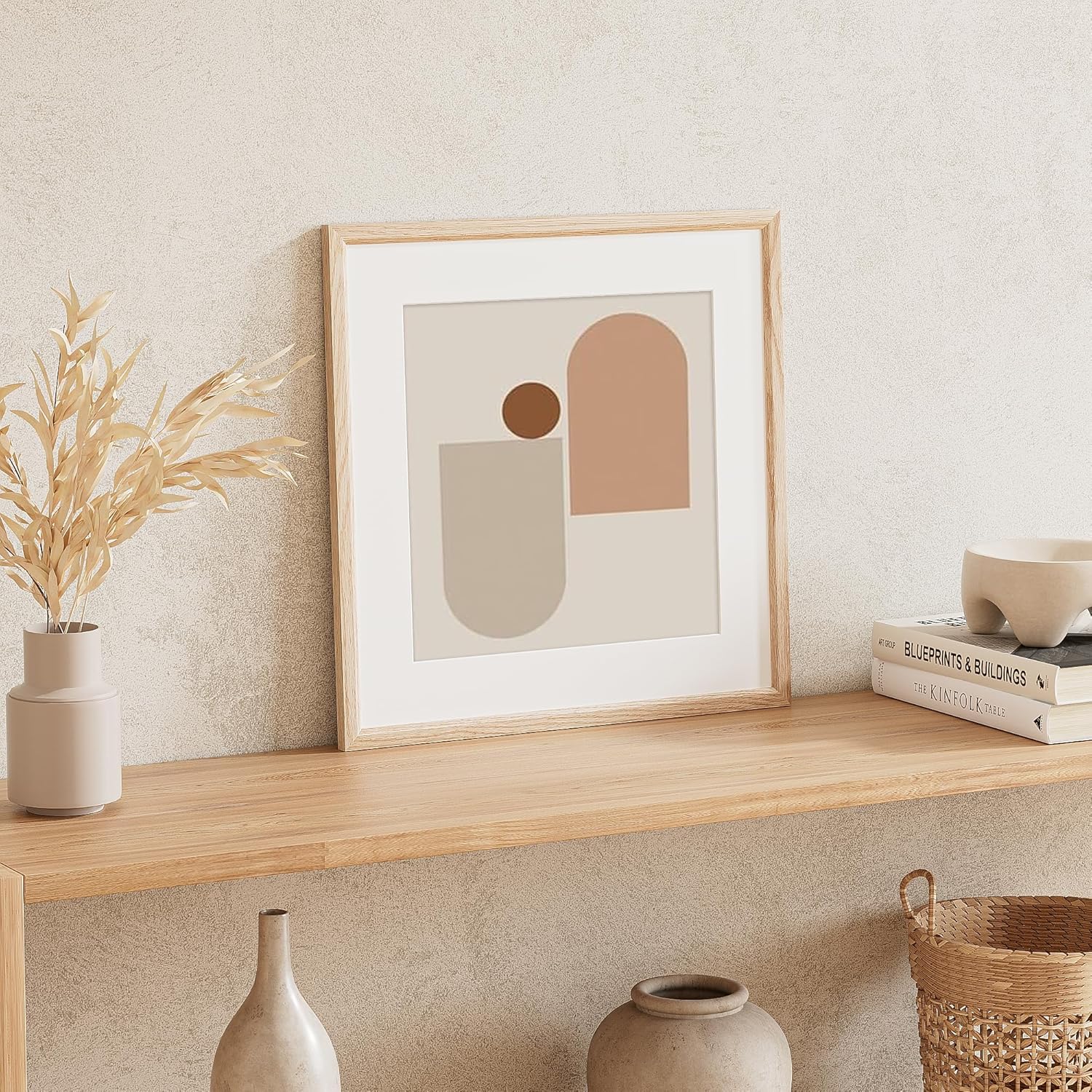 16x16 Picture Frame Set of 4 Natural Solid Oak Photo Frames with 12x12 Removable Mat Wall Hanging Large Handcrafted Frame with HD Plexiglass Wall and Tabletop Display Large Poster Frame