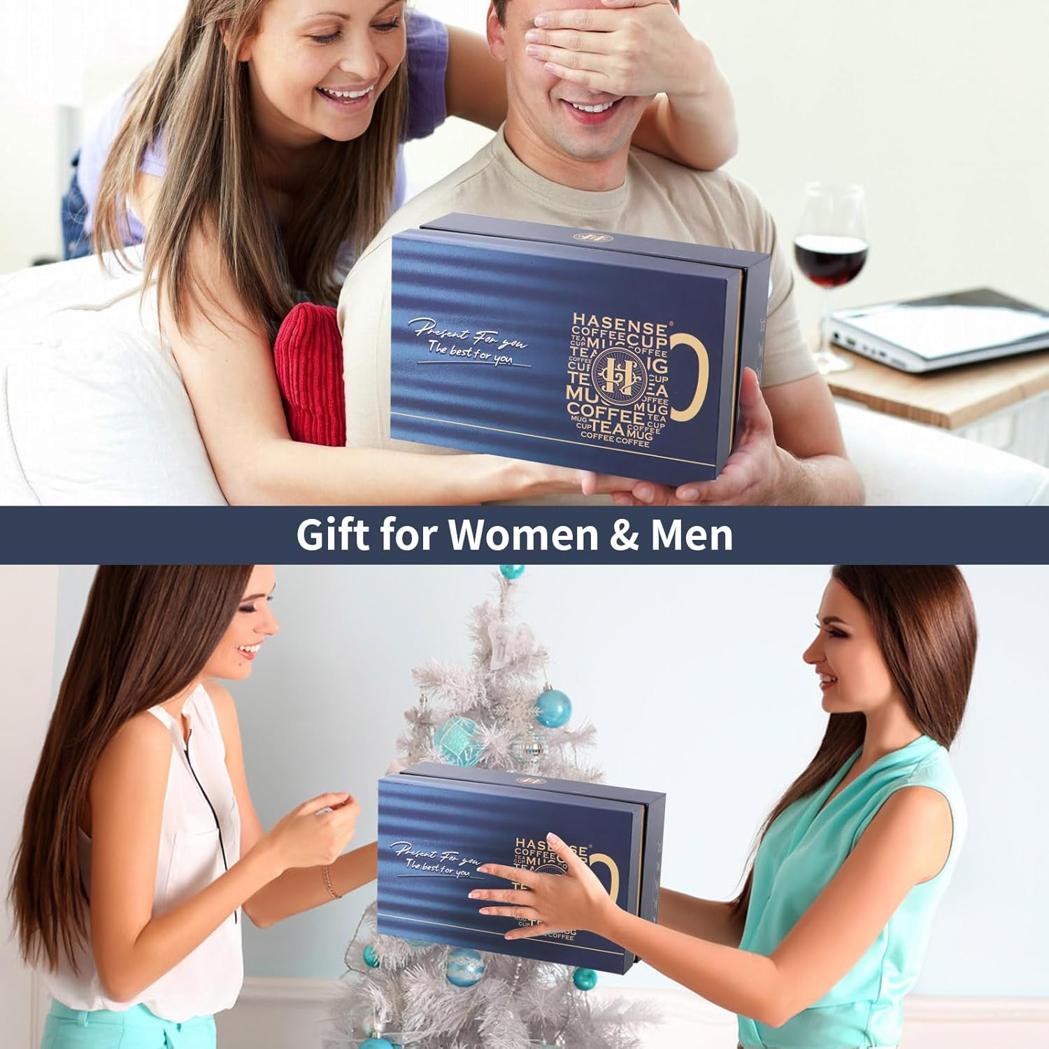 - High-Quality Ceramic Design: Crafted from premium ceramic, the mugs in the Hasense Christmas Coffee Mugs Gift Set offer both durability and elegance. The sleek design and high-quality material ensure long-lasting use and a touch of sophistication to your daily routine