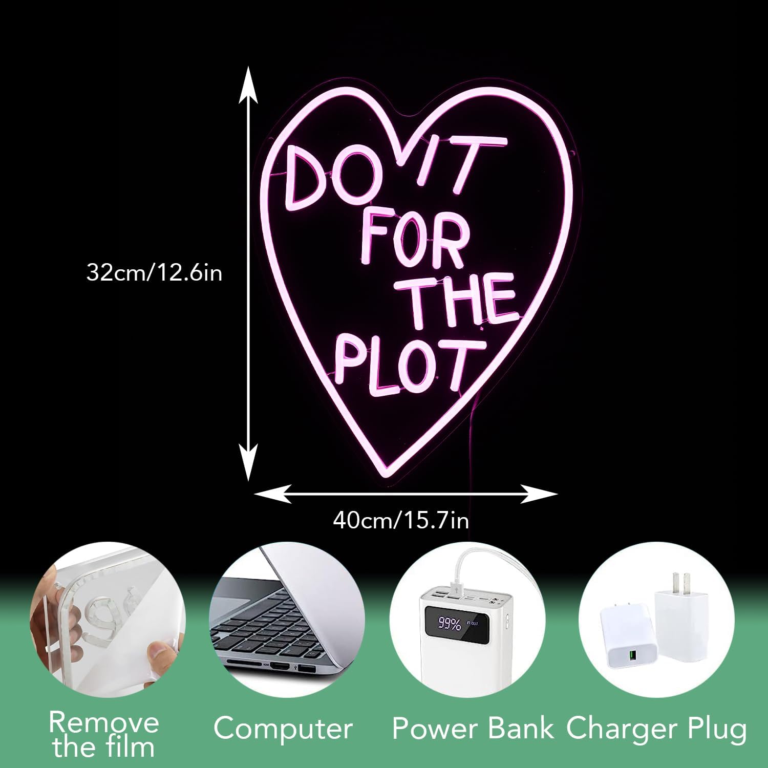 - Warm design: The heart shaped is combined with DO It For The Plot neon signs are a unique and charming lighting decoration. The pink design creates a soft and romantic atmosphere, bringing endless surprises and joy to people