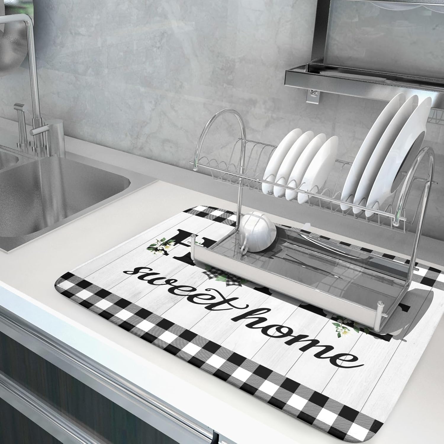 Farmhouse Rustic Dish Drying Mat for Kitchen Counter Sweet Home Spring Floral Absorbent Reversible Microfiber Kitchen Countertop Protector Dishes Pad Large 18x24 inch