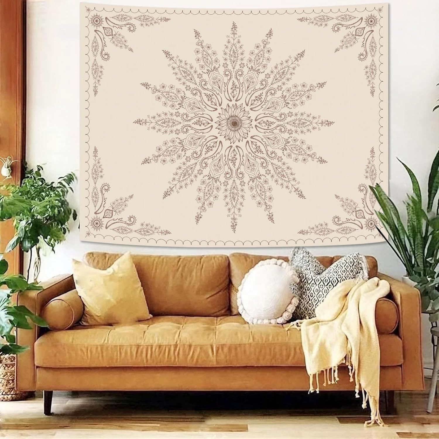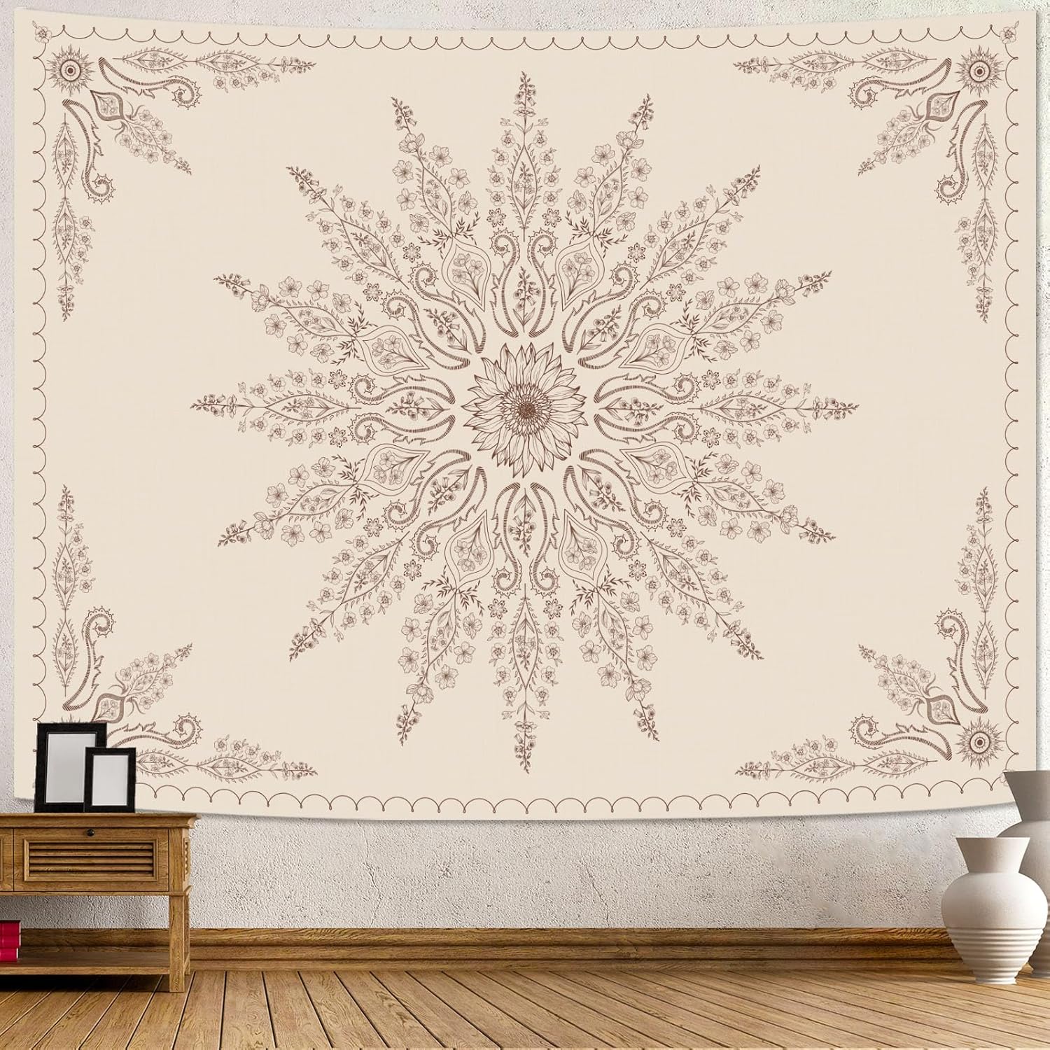 Fowocu Boho Floral Mandala Tapestry for Bedroom Aesthetic Bohemian Flower Wall Tapestry Beige Hippie Indian Small Tapestries Wall Hanging for Living Room Dorm Decor 48 x 36 Inch