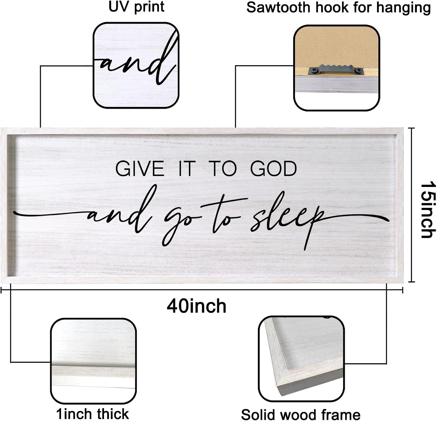 - 【Easy Installation】The inspirational give it to god and go to sleep sign white wall art is equipped with plastic expansion and self-tapping screws, which will take you less than ten minutes to install it on the wall.