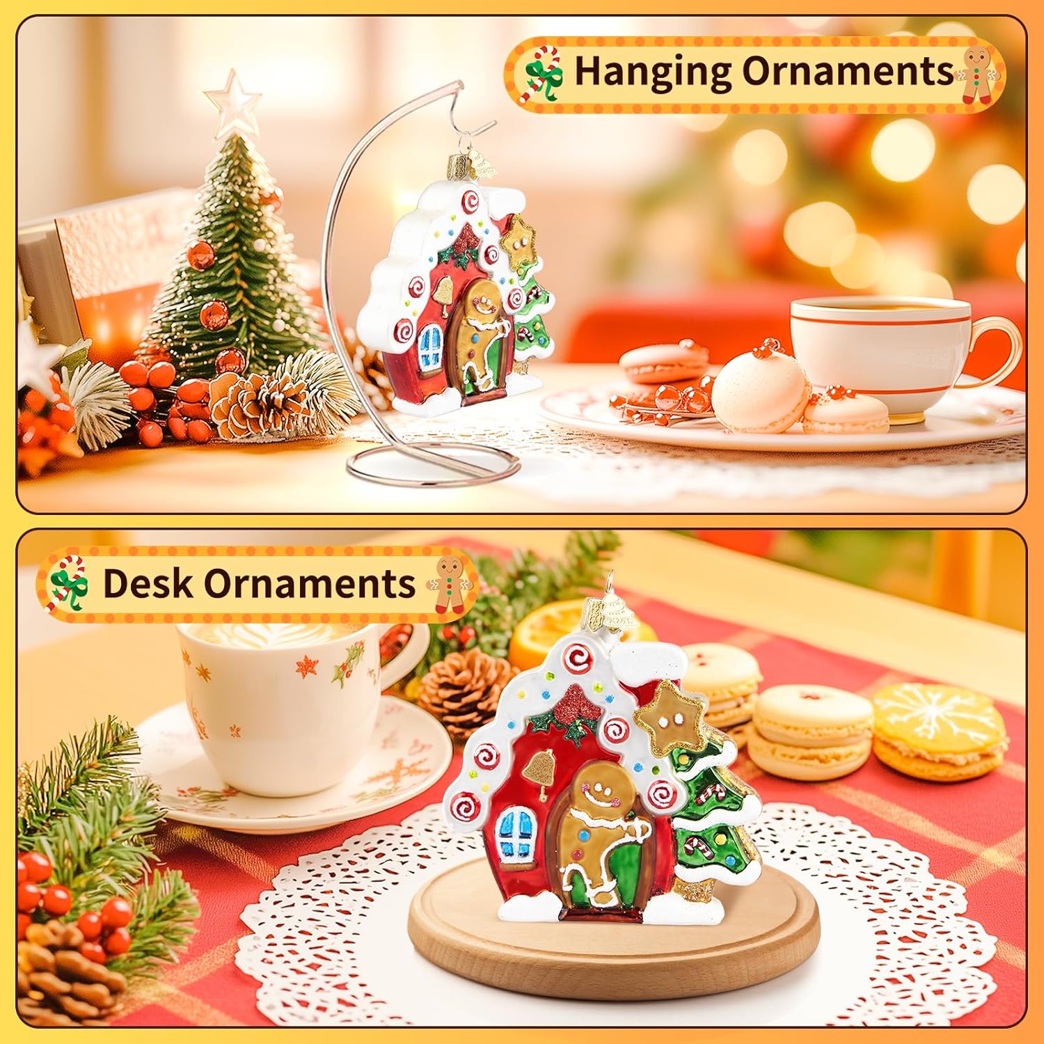 - Full of Festive Atmosphere: Handmade glass Christmas ornament adopts the image of a cute gingerbread man, who stands in front of the door of the house and comes out to greet you. It is a symbol of missing and reunion. The gingerbread ornament overall hand-painted, exquisite craftsmanship, delicate and vivid image depiction, you can decorate any place you want to decorate, believe it can be integrated well