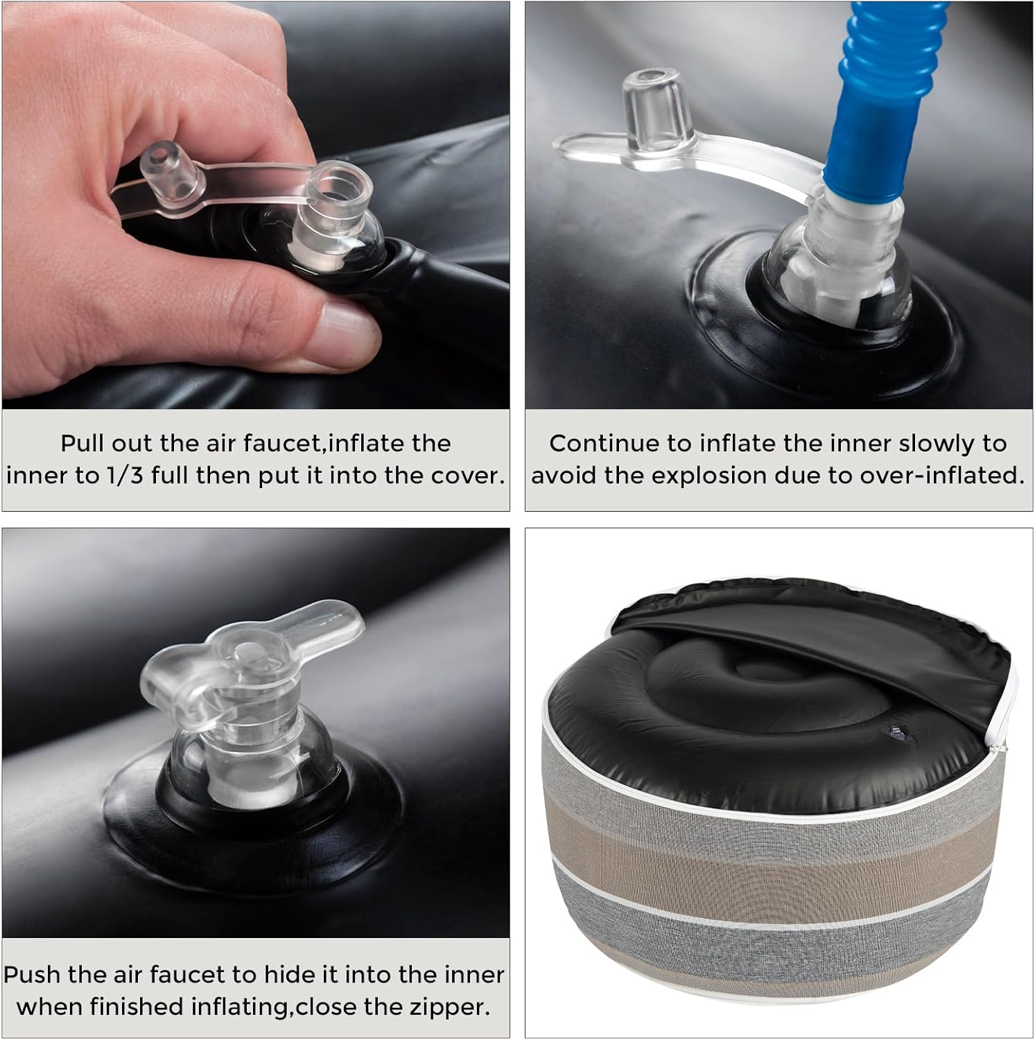 - 【Widely Used】-Inflatable ottoman can be a great addition to a living room or family room, where it can serve as extra seating or a footrest. Also a great option for outdoor spaces like patio, garden or pool areas, where they can provide extra seating or a place to rest your feet.
