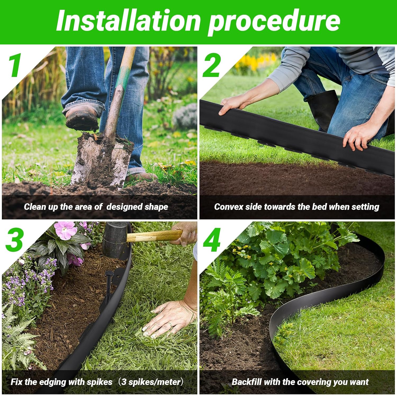 - 【Value Set】This set includes a 40-foot roll of 4-inch high black garden edging, along with 36 spiral plastic anchoring stakes and 35 durable metal G-nails—everything you need for a quick and easy installation to create a stunning landscape.