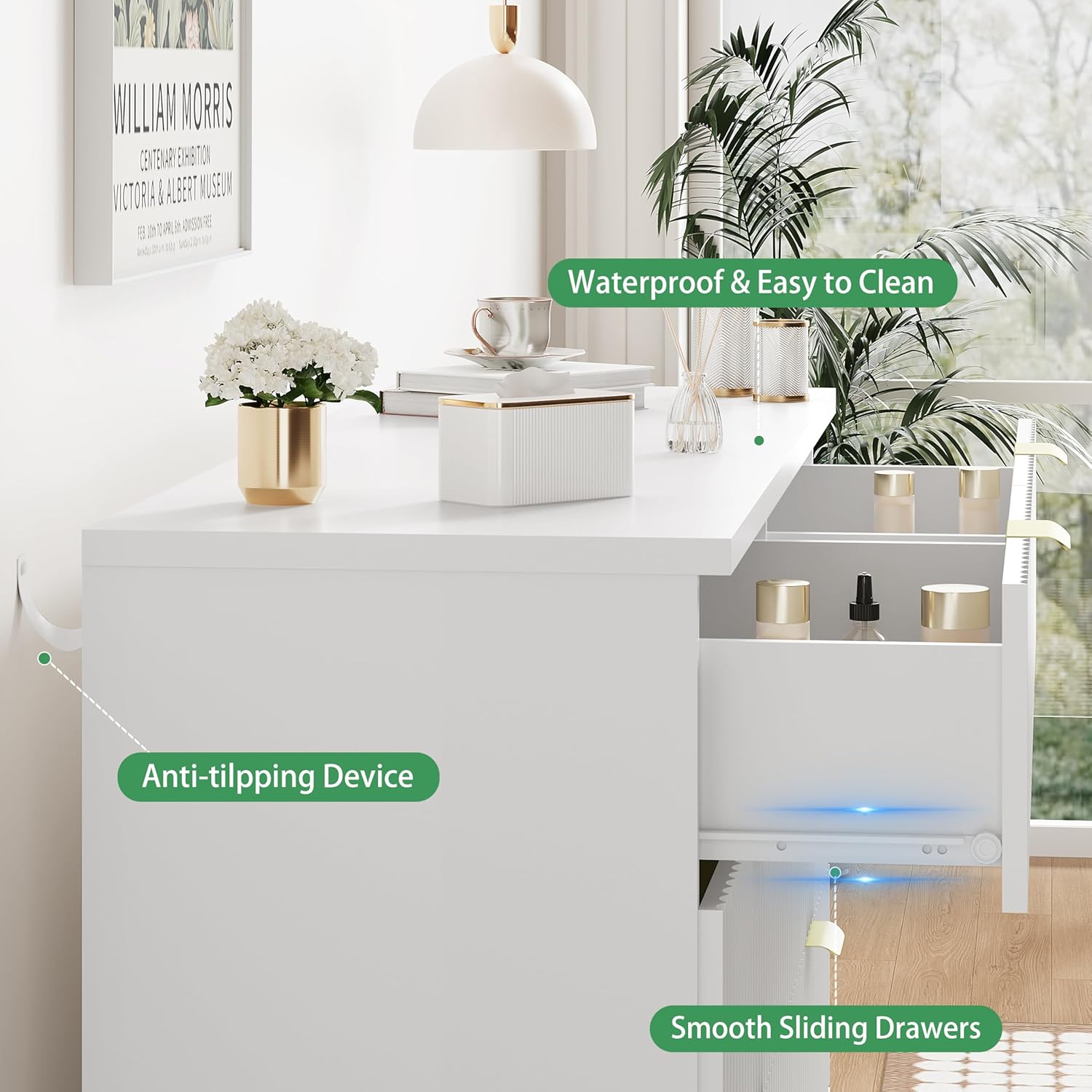 - 【Stability & Safety】The white/black/natural oak dresser is equipped with an anti-tipping device, which can be fixed on the wall to prevent accidents. Each drawer contains a wide metal handle and built-in slide rail, easy to push and pull. Besides, the sturdy base provides this dresser with drawers a strong support and the middle feet can be adjustable to keep balance on uneven floors