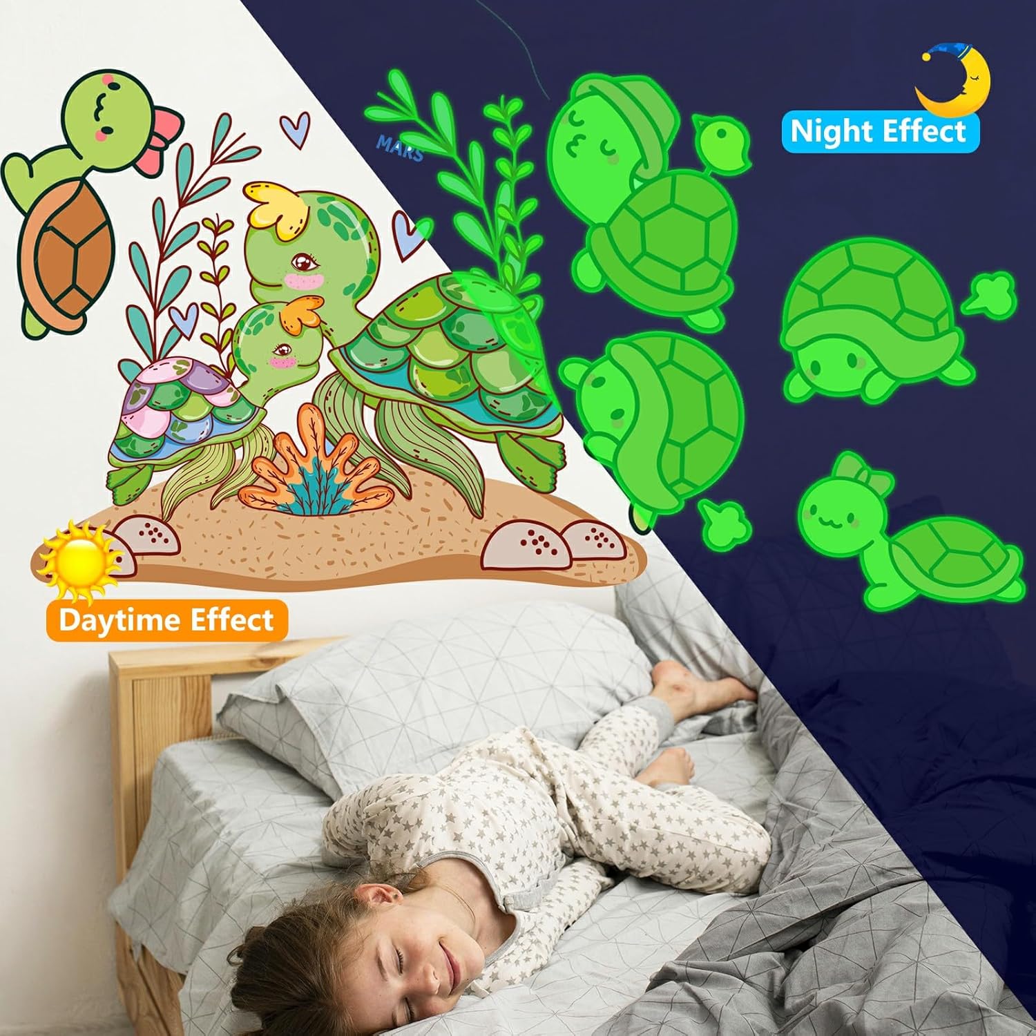 - โฆ DIY Wall Decals: You will get 4 sheets (Size of each sheet: 11.8 x 8.26 inch) of glowing Cute Turtles wall decals in a set, can be combined arbitrarily.The cute sea turtle wall stickers can be easily matched with a variety of home decoration styles, children can DIY a fairy-tale ocean world according to their own preferences.