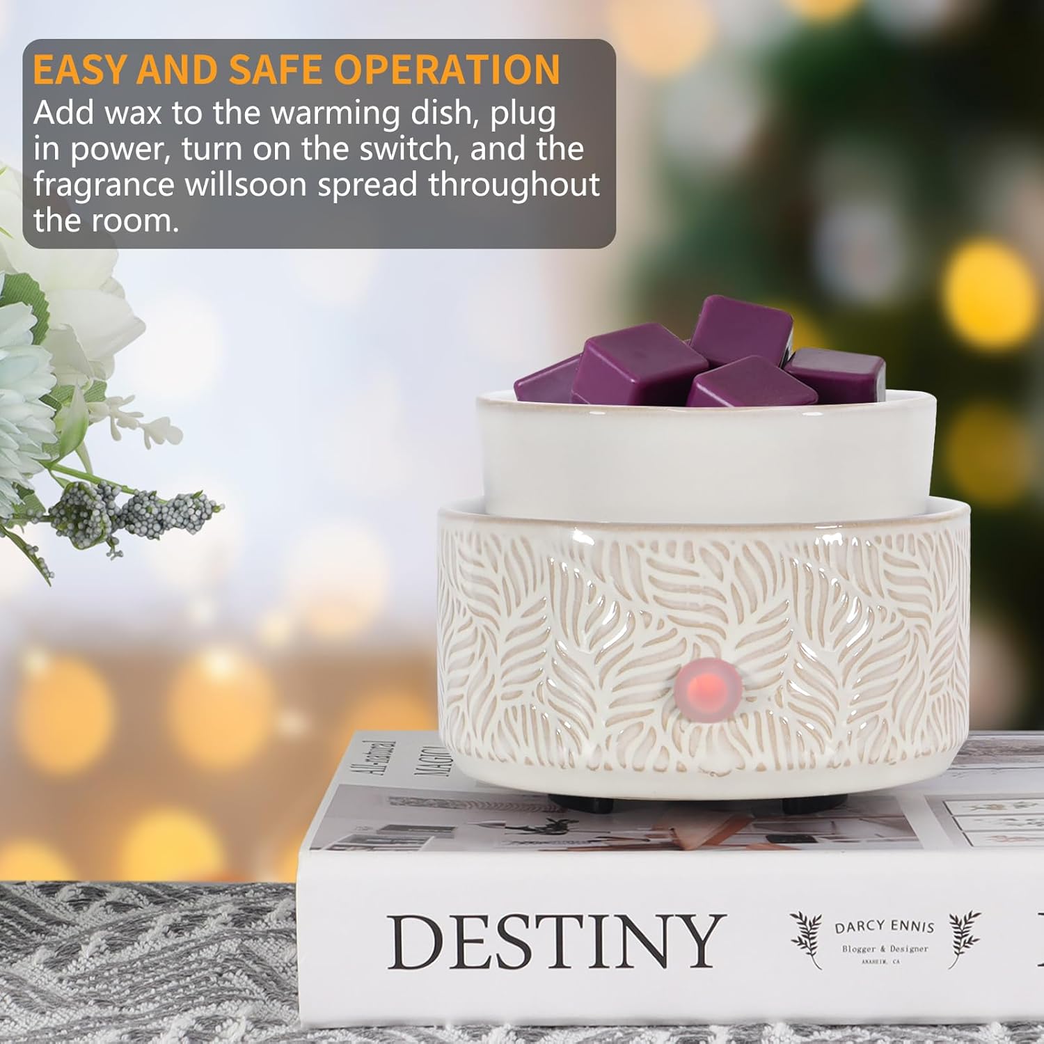 Electric Wax Melt Warmer 4-in-1 Candle Warmer for Scented Wax Melter Cute Ceramic Fragrance Wax Burner for Home Office Bedroom Deco Gift for Women White