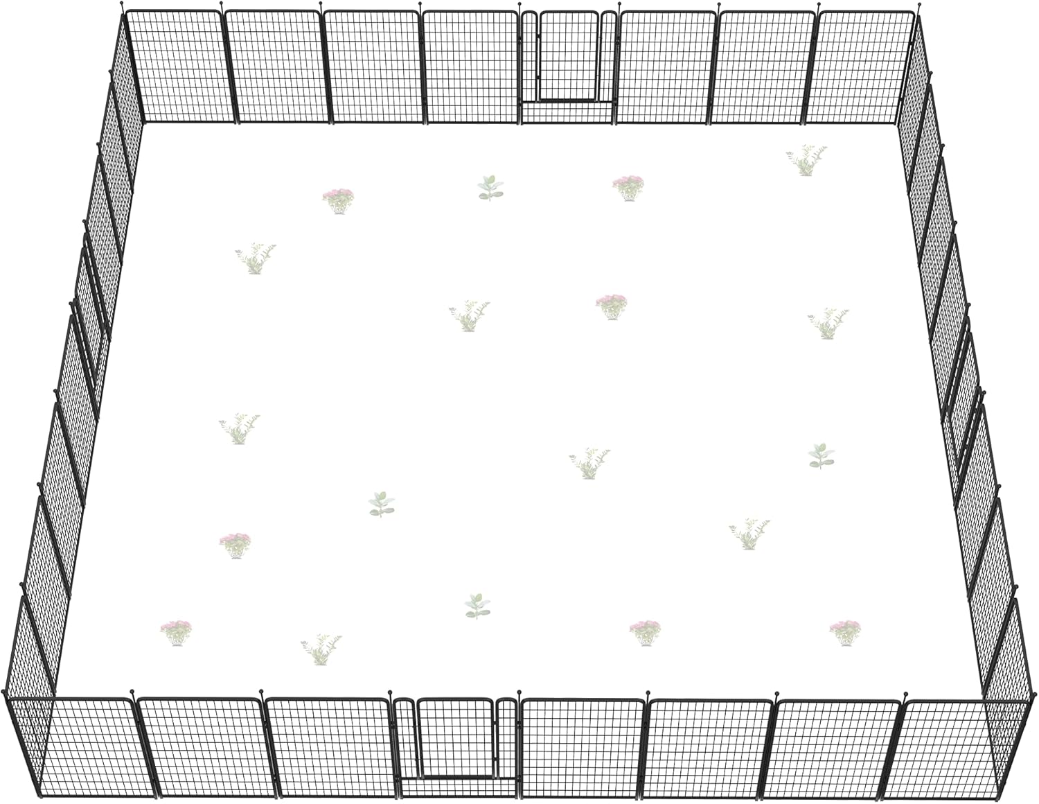FXW Garden Fence Outdoor for The Yard – 50in(H) x 80.3ft(L) Heavy Duty Metal Animal Barrier for Dog and Rabbit, Decorative Dog Fence, 32 Panels, Black