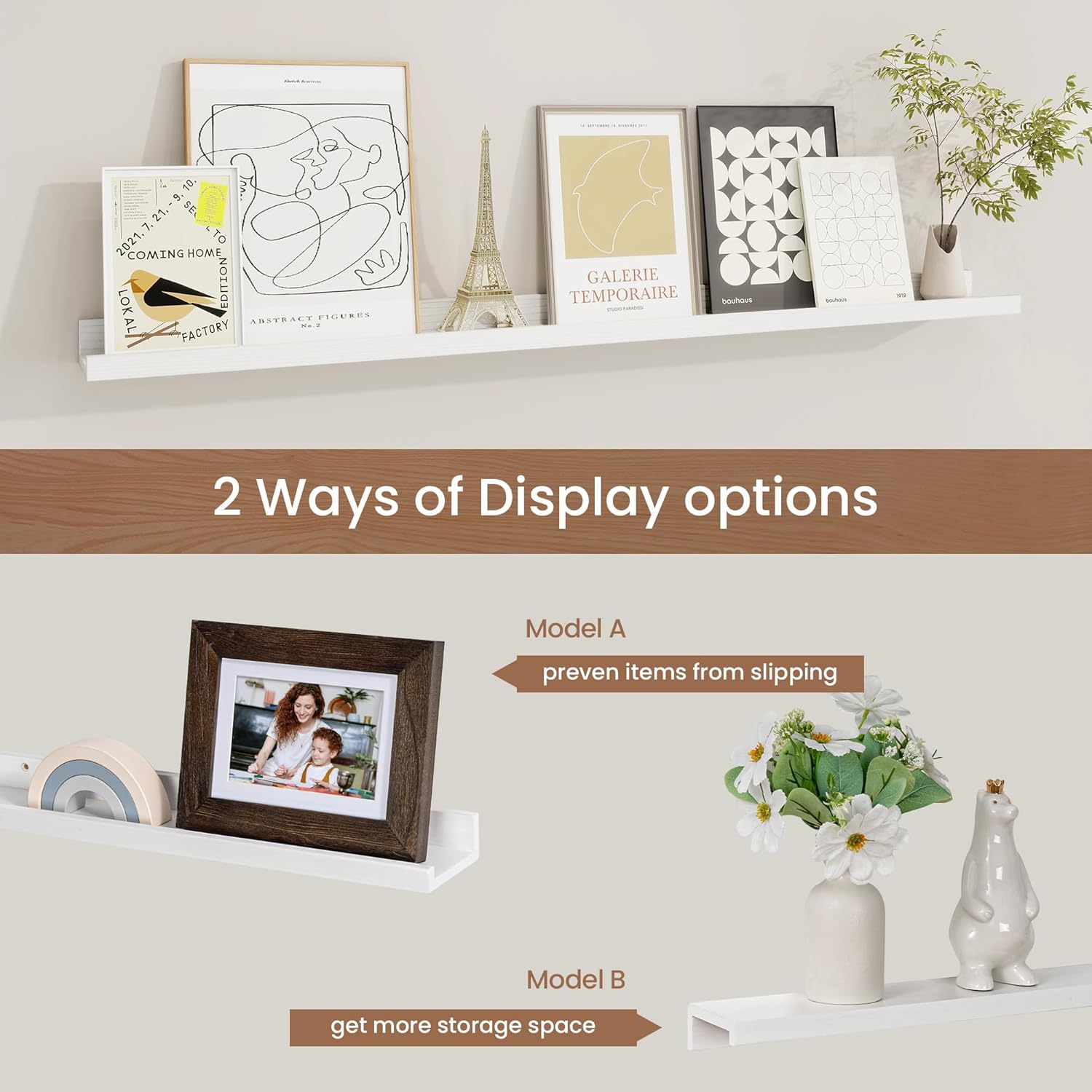 - Chic Minimalist Design: Solid pine wood picture ledge shelves available in multiple colors and sizes, these picture shelves complement any decor, from modern to farmhouse. Use them alone or in a gallery-style arrangement to create a stylish focal point