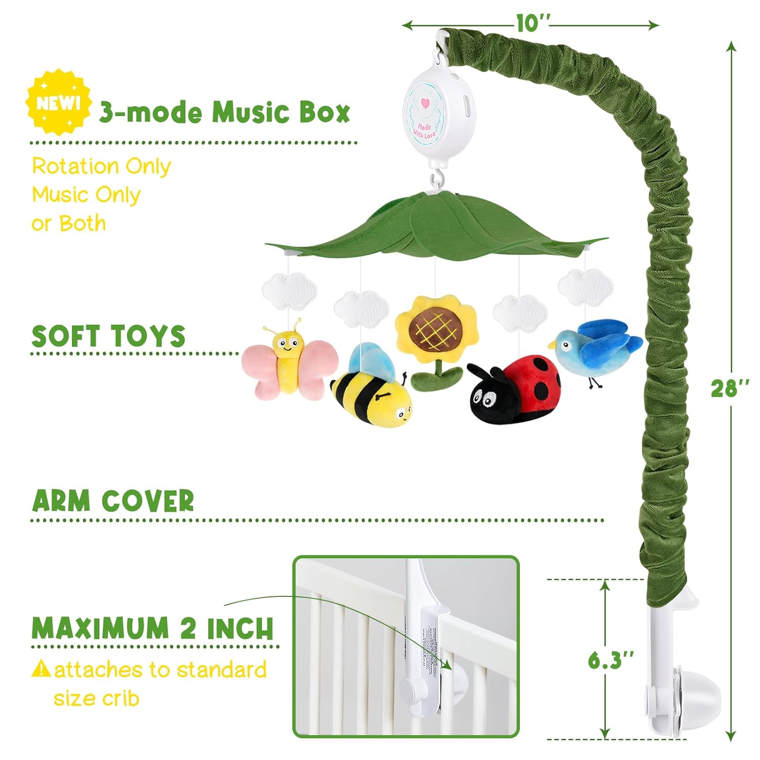 Garden Friends Crib Mobile – Baby Mobile for Crib with Upgraded 3-Mode Music Box, Colorful Baby Mobile with Butterfly, Bee and Bird for Boys & Girls, Nursery Mobiles, Fits Standard Cribs