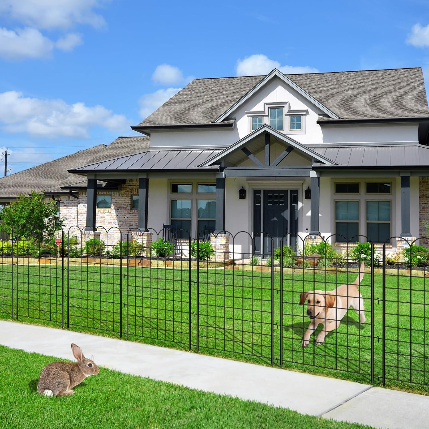 - Multipurpose Decorative Fence: The metal dog fence panels features a classic black design that perfectly complements any garden or patio style. This Patio Fence Can be Used as a Small Garden Fence or an Animal Barrier Fence. It Is Very suitable for Garden Borders, Patio Fencing, Animal Barriers, Dog Fencing, Rabbit Fencing, Flower Border and more