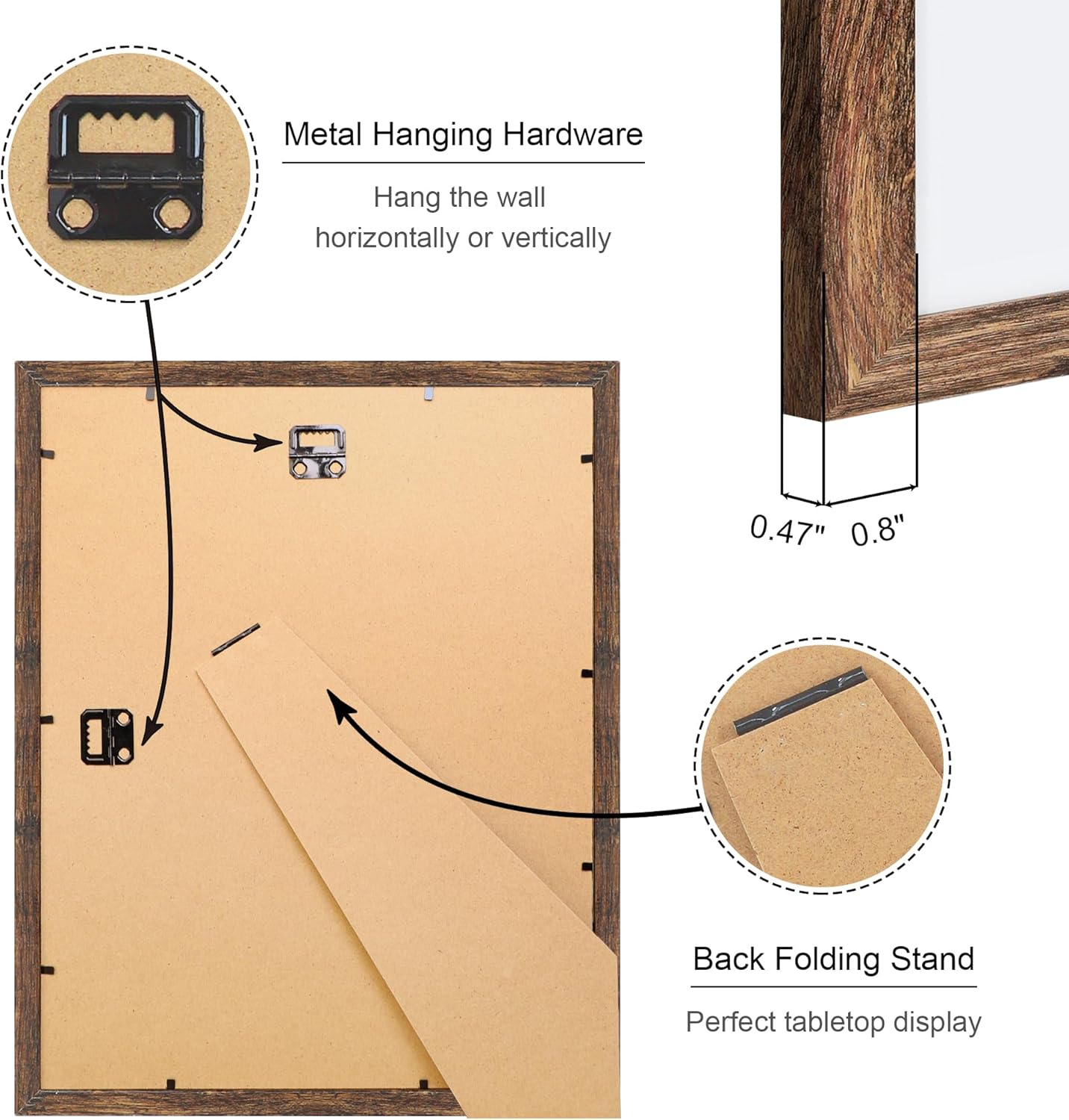 - Multiple Display:11 by 14 photo frames come with hanging hardware, which can be hung horizontally or vertically on the wall, or displayed on the tabletop through the stand