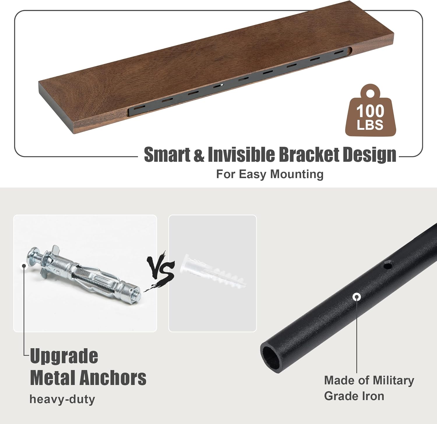 - Sturdy & Functional: Equipped with heavy-duty metal brackets, each shelf supports up to 100 lbs. The flat surface and stable construction make them suitable for any room while showcasing the natural beauty of the wood grain.