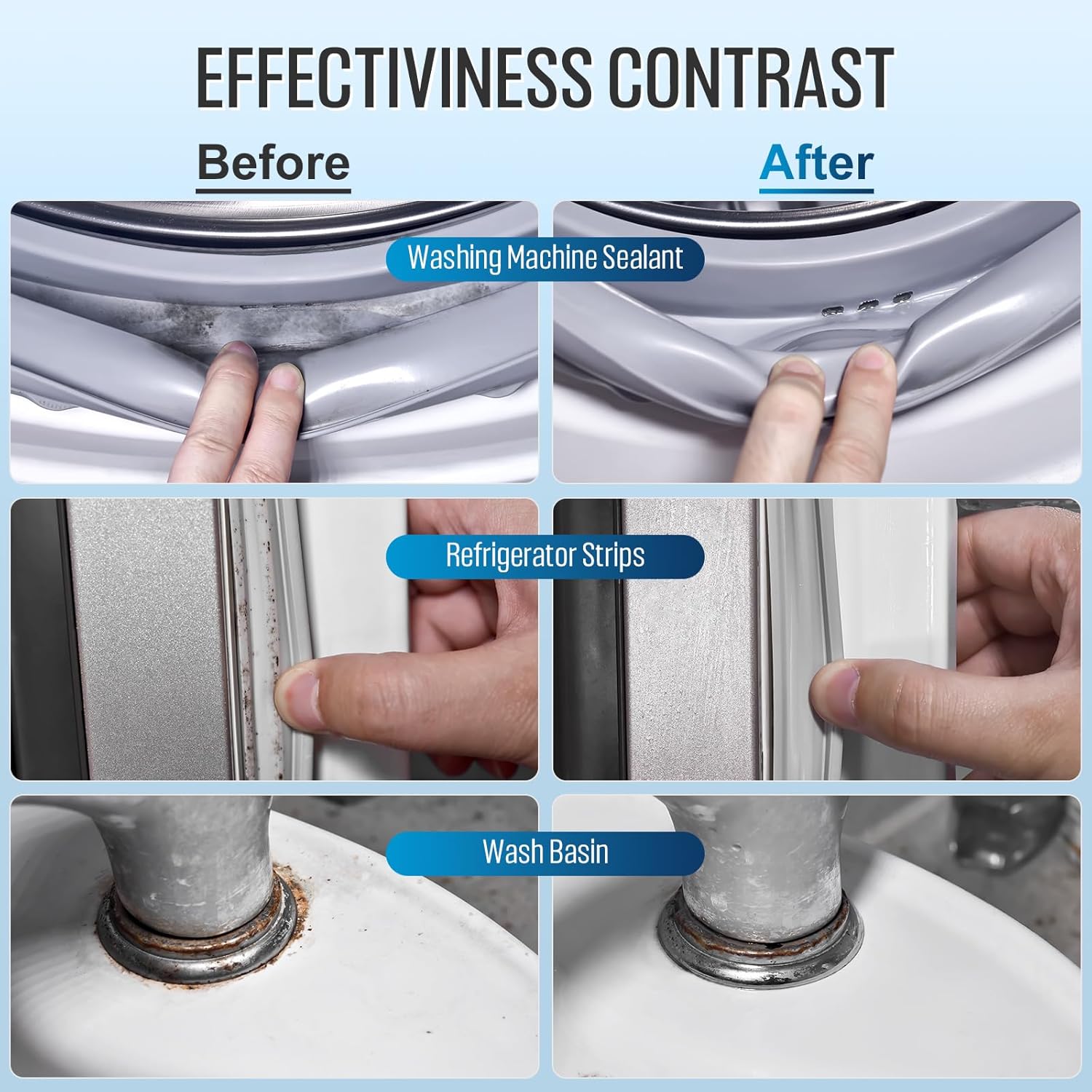 - 【Wide range of use】Home cleaner gel can be used in refrigerators, washing machine silicone sealants, kitchen sinks, bathroom sinks, silicone sealants, stainless steel sinks, washbasins, as well as bathtubs, balconies, tiles, window frames, etc
