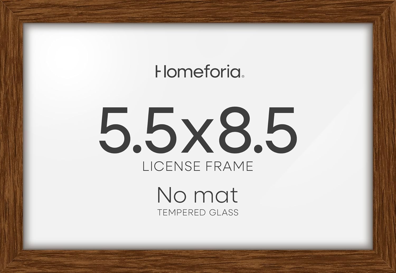 Homeforia 5.5 x 8.5 Business License Frame Brown, High End Dark Oak 5.5x8.5 Wooden Certificate Frames, 5.5 by 8.5 Walnut Wood Document Frame for Wall or Tabletop, Tempered Glass, Wall Kit, Set of 1