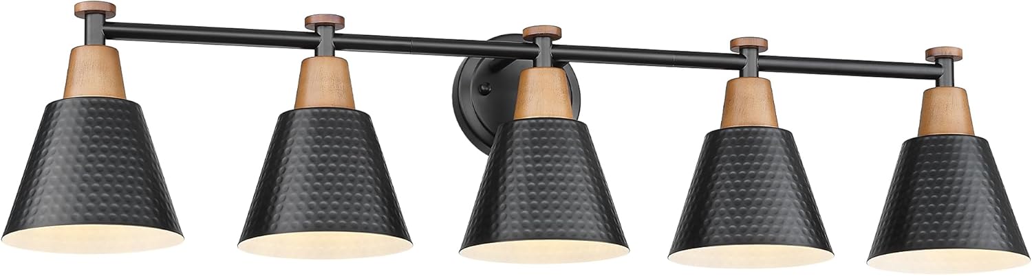 - Refined & Reliable Illumination โ ETL listed for safety, this black bathroom light fixture combines farmhouse charm with sleek modern appeal. Featuring a 5 light bathroom vanity light design, it not only adds sophistication but also delivers dependable performance.