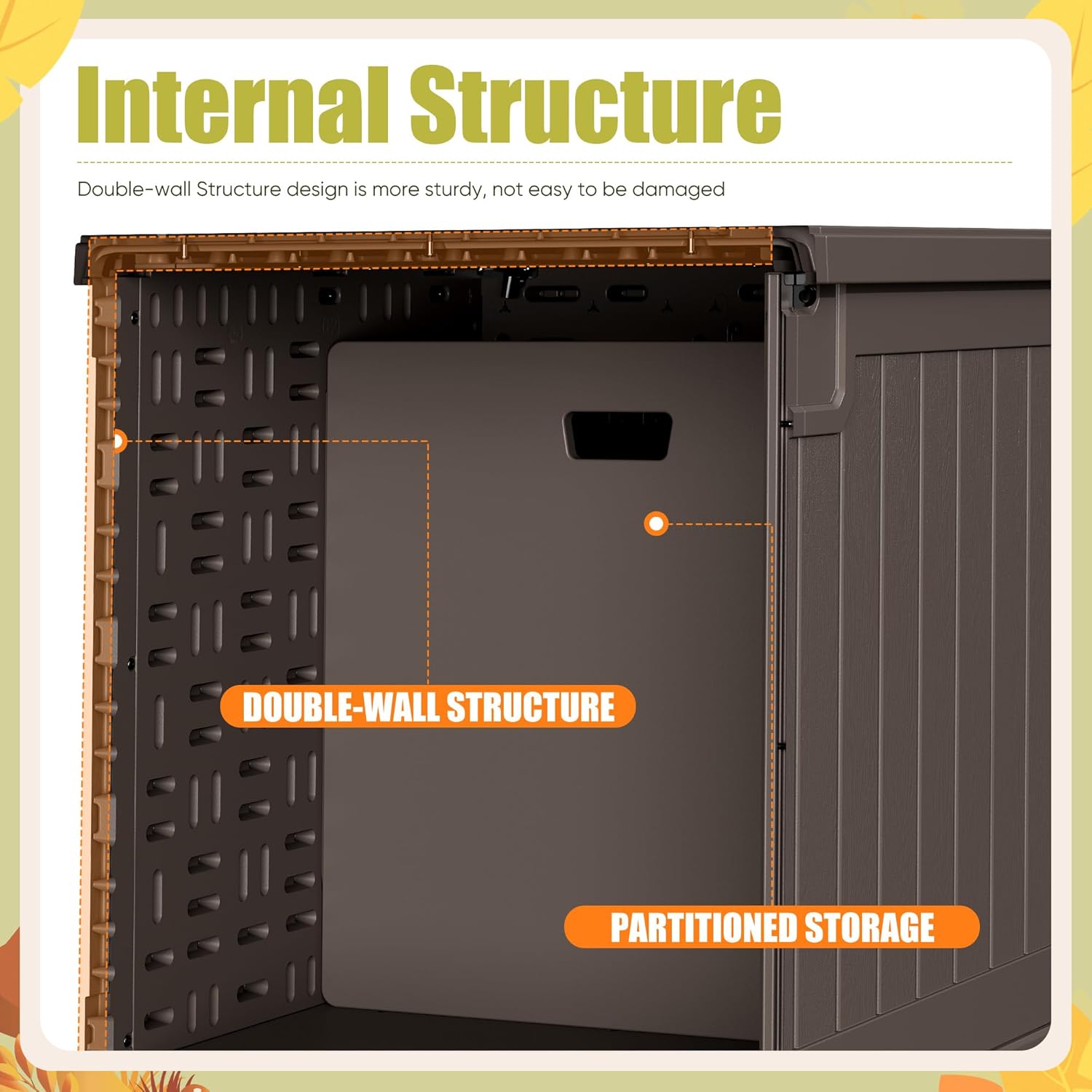Devoko 240 Gallon Double-Wall Deck Box with Divider, Side Handles, Resin Outdoor Large Storage Box Waterproof and Lockable for Patio Furniture, Garden, Pool (Brown)