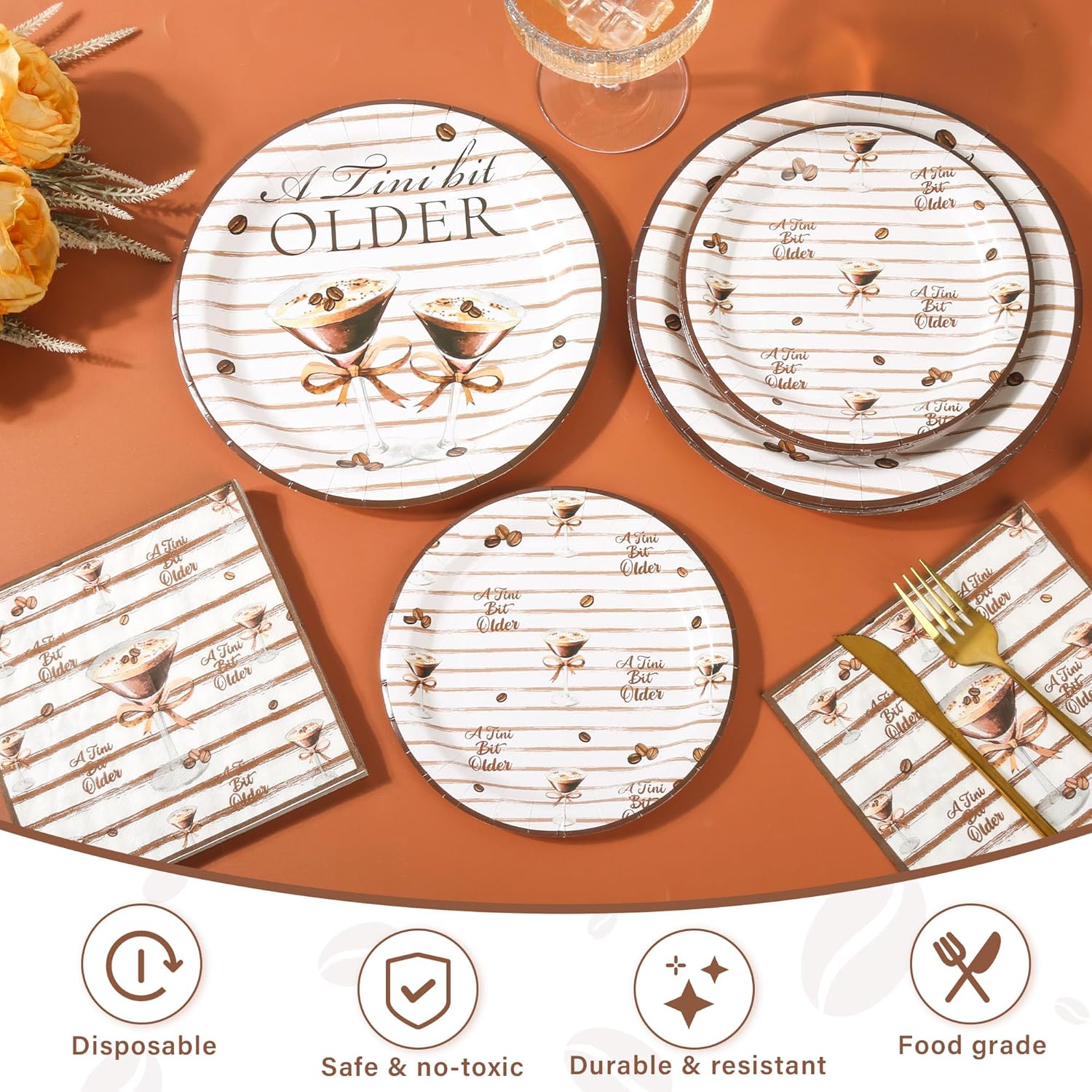 - UNIQUE DESIGN---Stand out with our one-of-a-kind martini bow party plates supplies and a tini bit older plates and napkins, designed to match both classic and modern party themes. Expresso martini party decorations blend effortlessly with any decor, adding an extra layer of sophistication. Whether you're setting up a martini bar or celebrating a special moment, our a tini bit older plates, martini themed paper plates, and martini plates and napkins offer a stylish and unique touch that your guests will love.