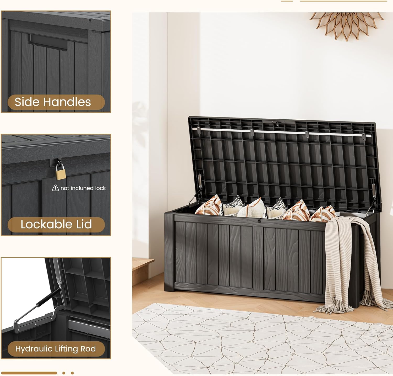 - Ideal Storage Box - With a spacious 120-gallon capacity, this deck box provides ample room to store all your outdoor essentials, including patio cushions, pool accessories, gardening tools, and more. Keep your backyard tidy and organized with this versatile storage solution.
