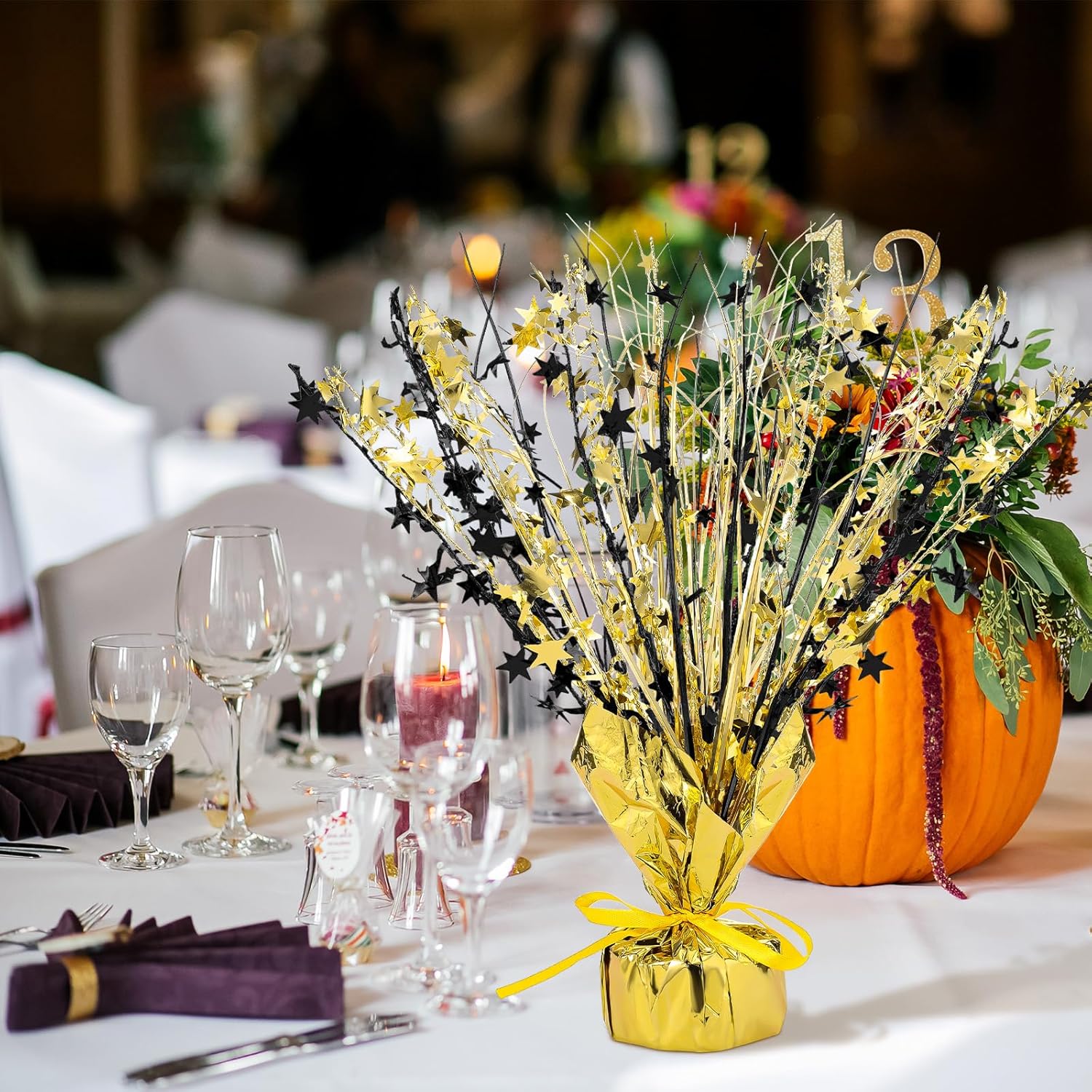 Crowye 18 Pieces Metallic Foil Spray Centerpiece Party Star Table Decoration Burst Metallic Table Centerpieces for Birthday Party Season Holiday (Black Gold)