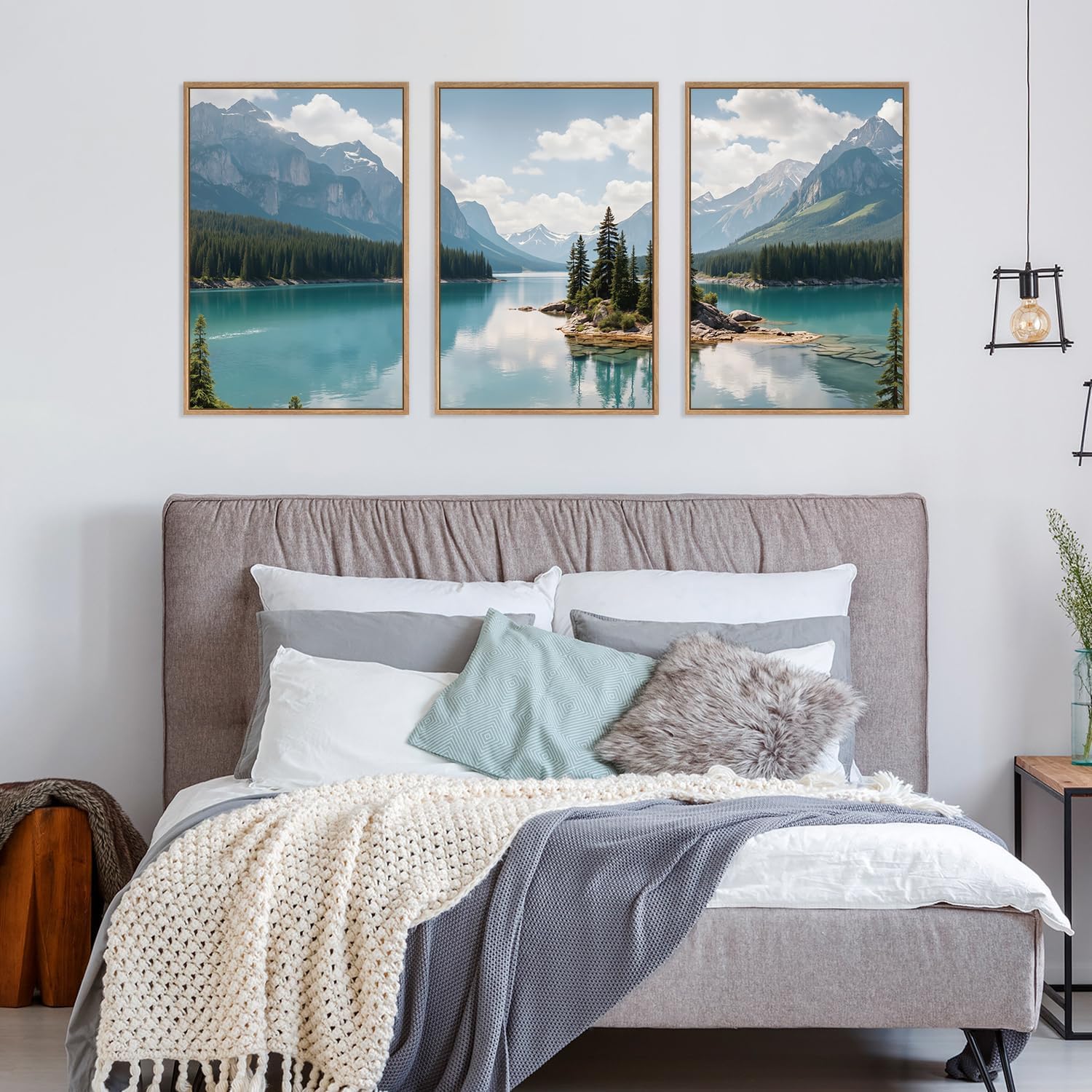 HLNIUC Large Mountain Lake Framed Canvas Wall Art Set,Beautiful Nature Landscape Wall Decor,Lake Forest and Mountain Scenery Art Print,Modern Scenic Wall Painting for Living Room,Bedroom - 16”x24”x3