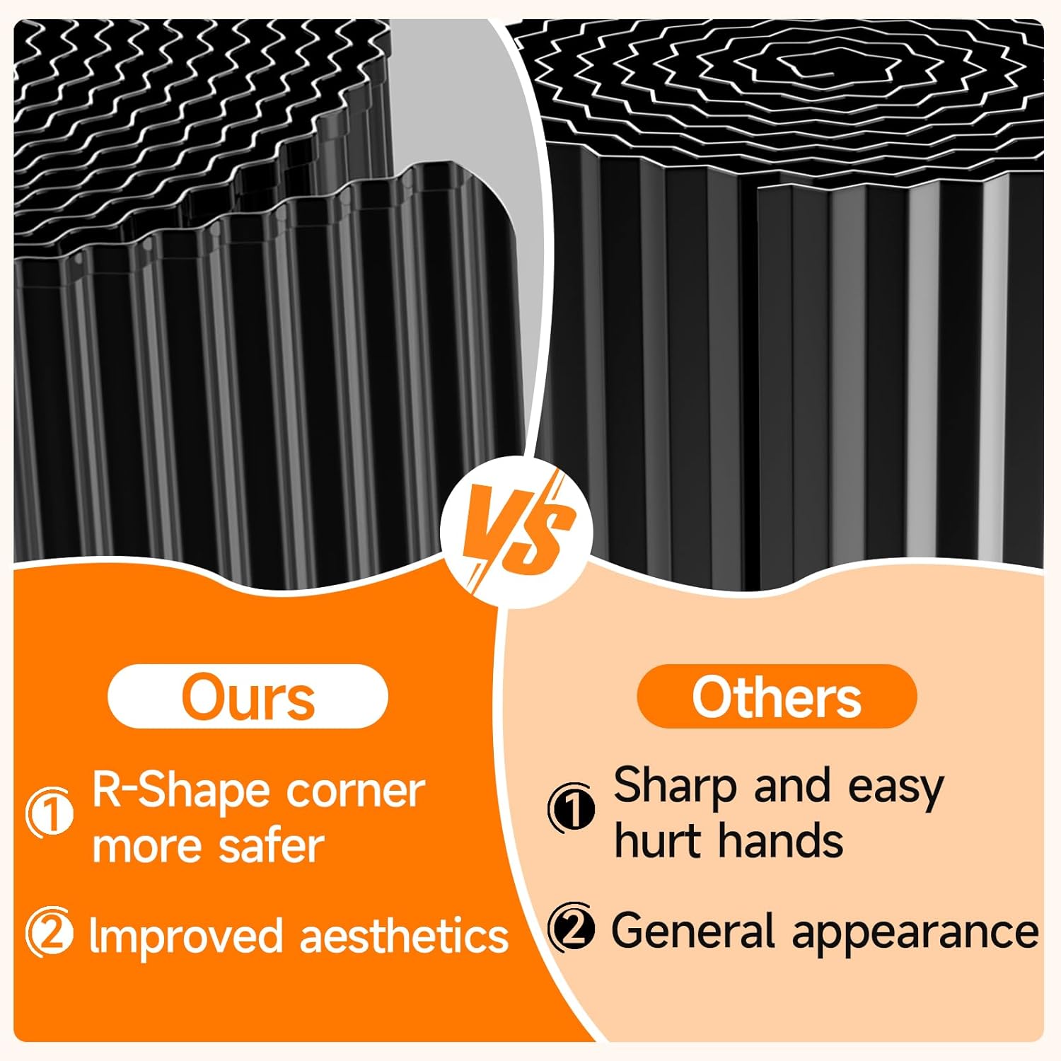 - Clean and Stylish Design Our narrow corrugated metal edge feature rounded R-shaped corners and smooth, rounded, rolled top and bottom edges ,for added security,It not only enhances the aesthetics of your garden, flower bed, or lawn but also ensures a polished and clean look for any outdoor space.
