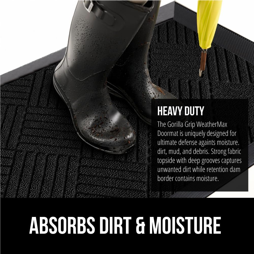 - THE ORIGINAL WEATHERMAX ALL SEASON DOORMAT: Gorilla Grip's Original WeatherMax doormat is built tough with a heavy duty, yet soft and flexible construction; deep grooves, beveled rubber border and retention dam help capture dirt, debris and moisture