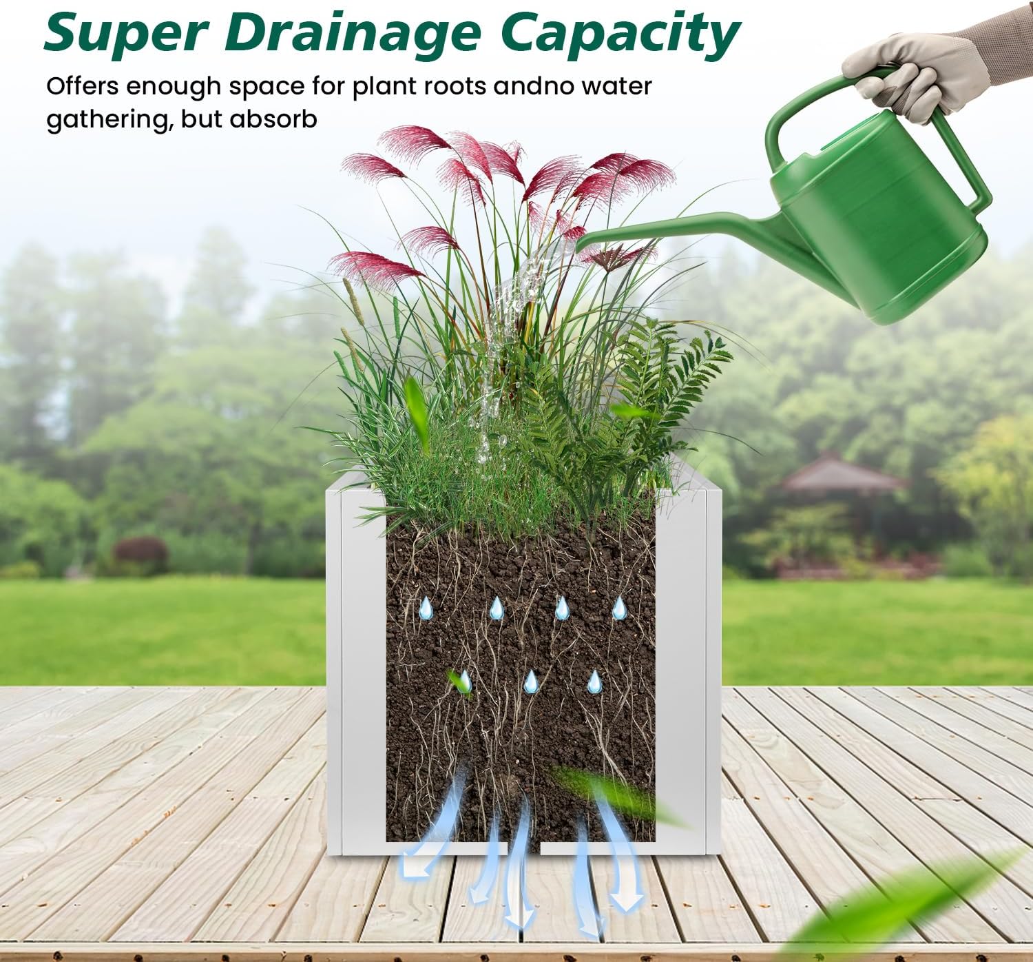- [ White Square Planter] For indoor and outdoor use, garden, yard, deck, patio, commercial and residential Tall Plant Backyard.