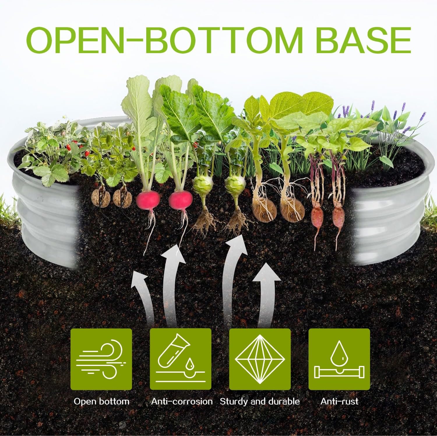 - OPEN BOTTOM DESIGN: GARDMAX galvanized planter raised beds are designed with an open bottom, which is good for drainage to protect plants, plant roots won't be sick from excessive water. It also keep weeds away from soil and keep out chicken, small pets like puppies, rabbits to protect your plants