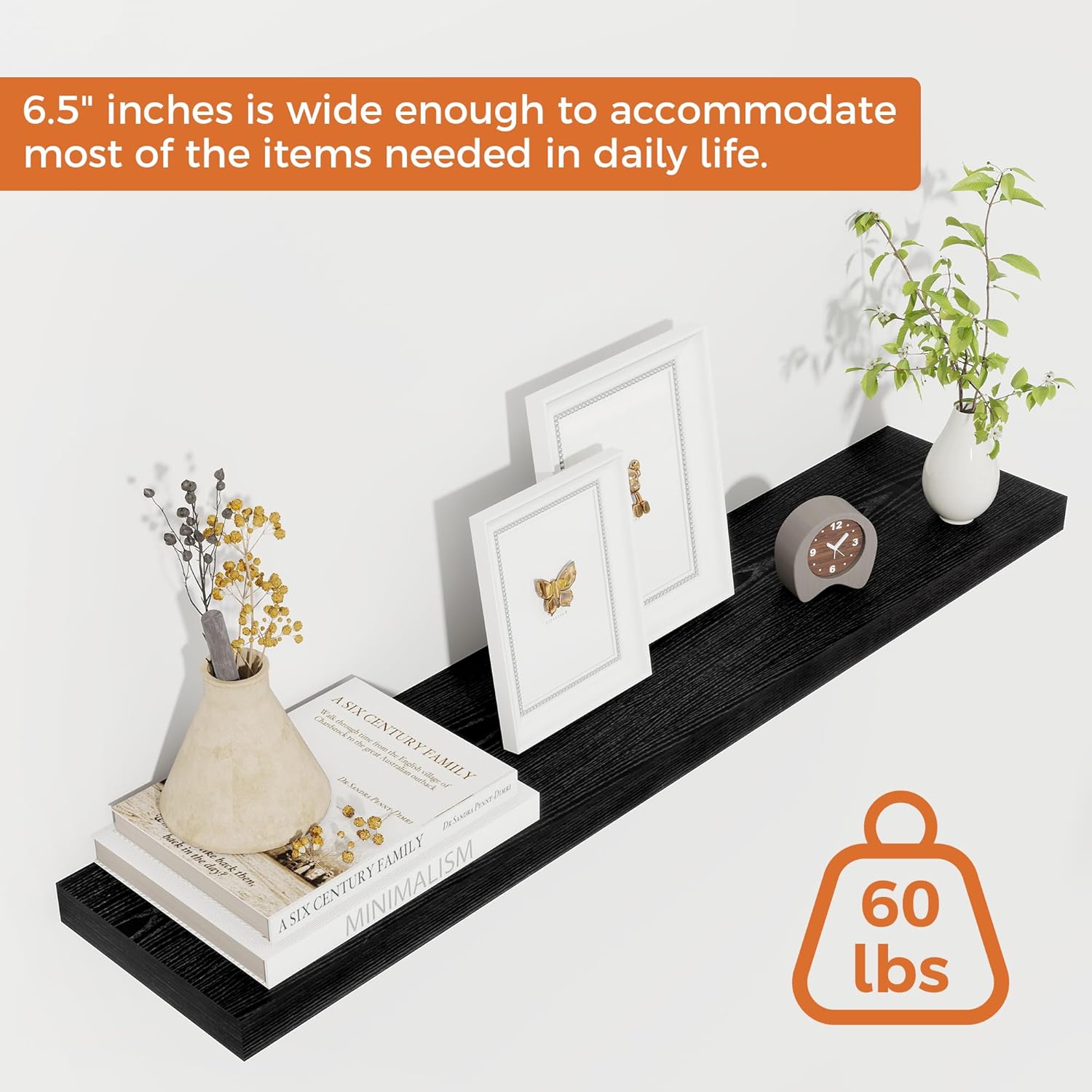 Fun Memories 32Inch Floating Shelves for Wall 2 Pack Wood Shelves for Kitchen, Bathroom, Bedroom Wall Mounted Rustic Wood Floating Shelf with Invisible Brackets for Books, Storage, Decor, Black