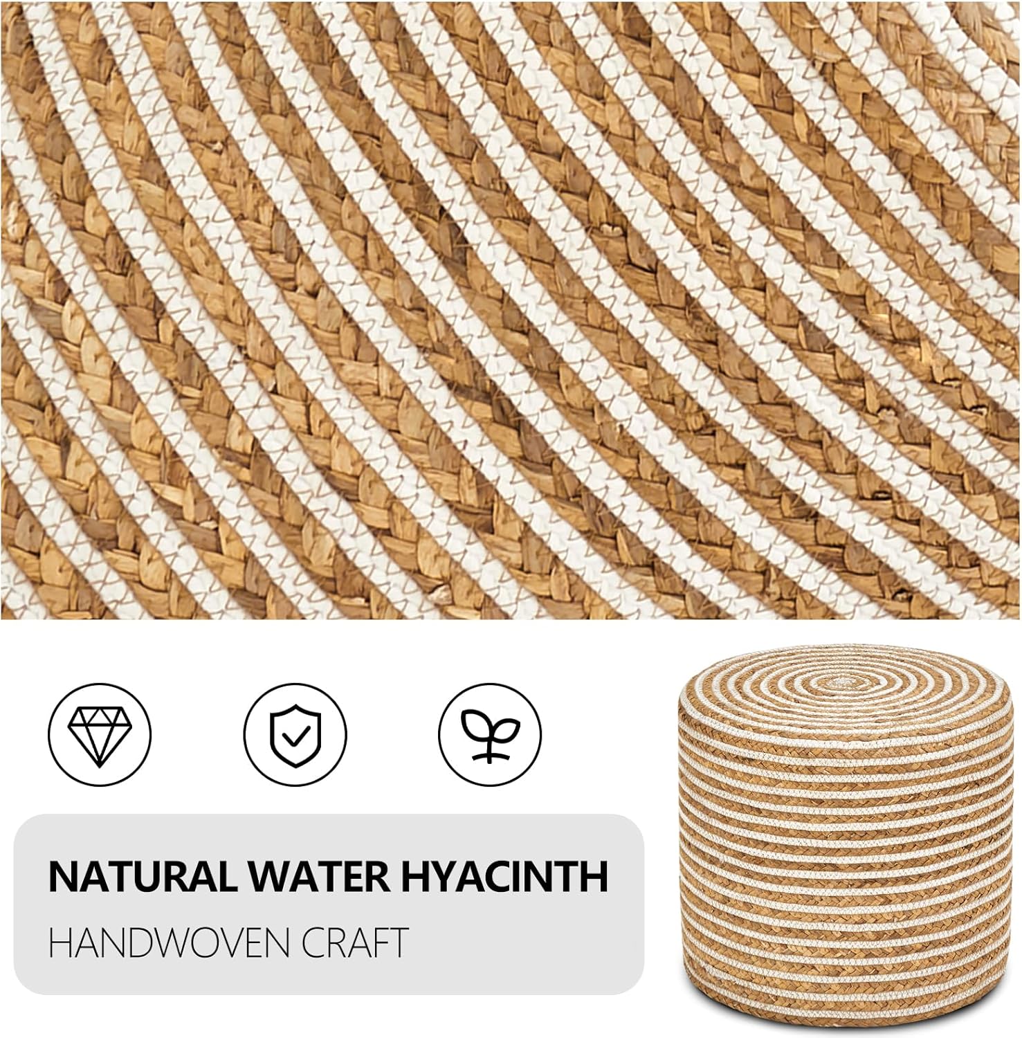 - 100% Handmade Cover: Pouf Ottoman is made of sustainable, and durable natural seaweed & corn husk braid.High-end sewing technology makes natural materials more tight and not easy to open