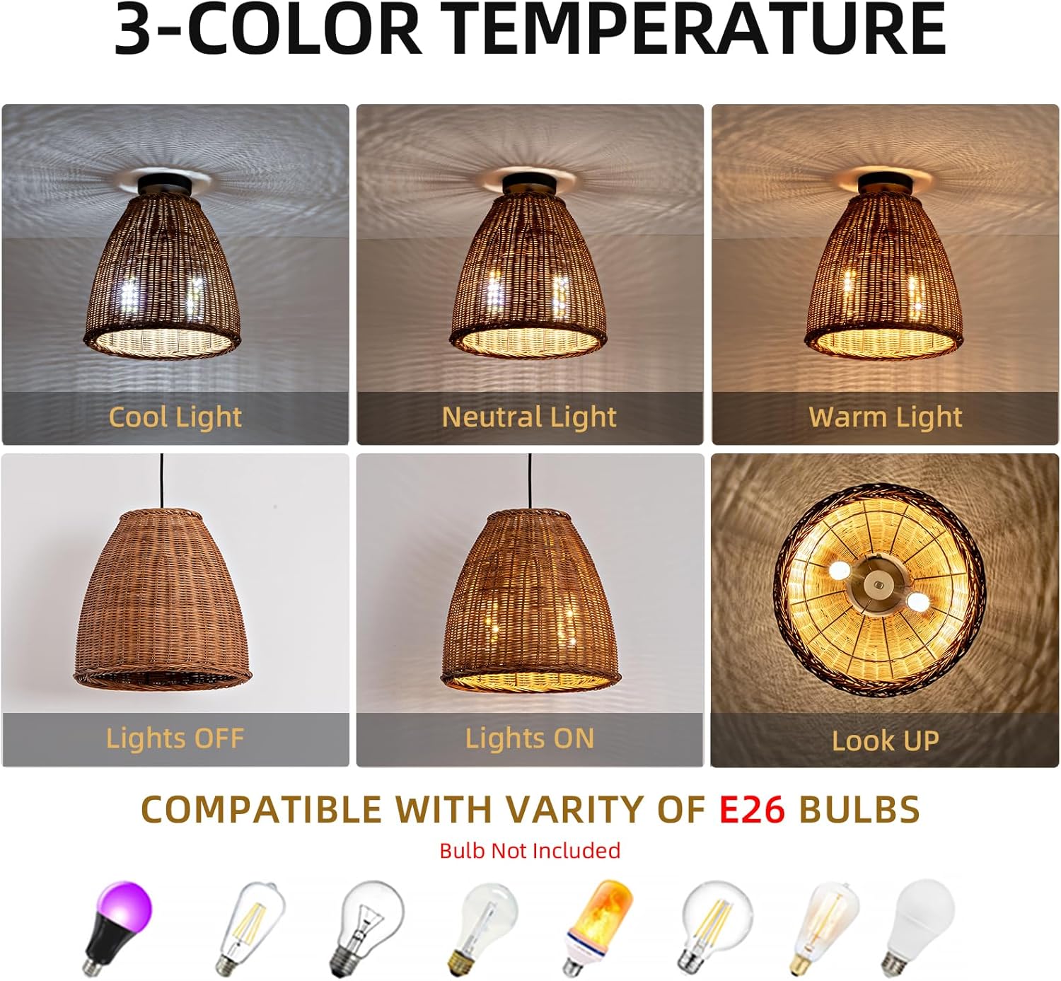 - 【Hand-Woven Rattan Chandelier Natural Material】Rattan craft is selected from the trees we grow , which undergoes various processing procedures. This Rattan craft is heat resistant, fade resistant, safe and healthy