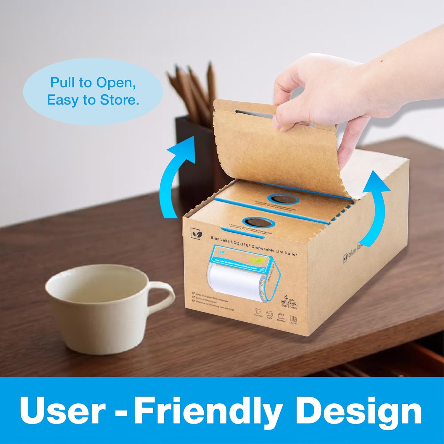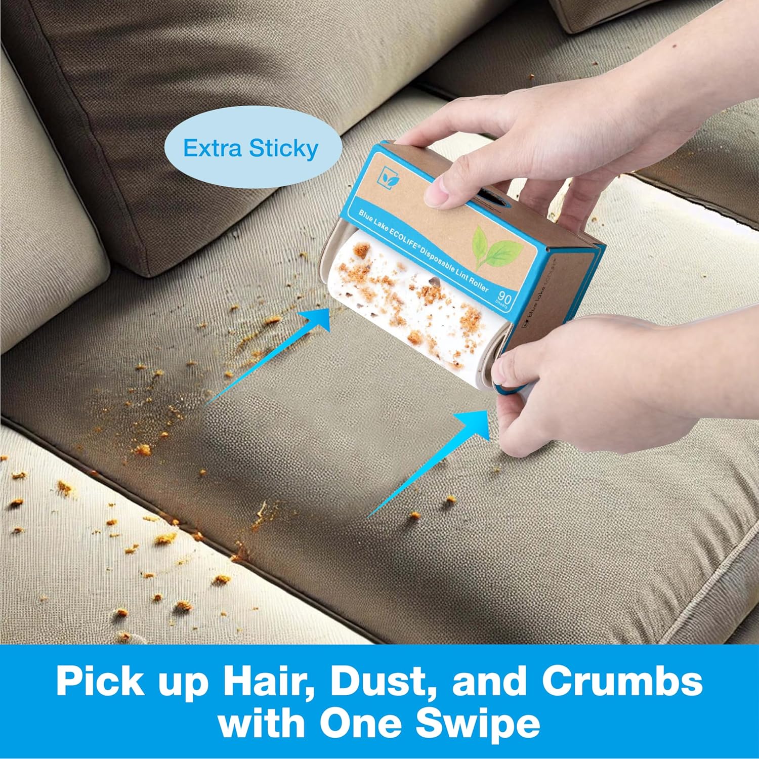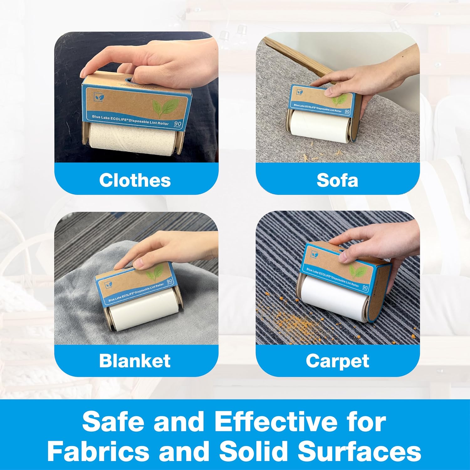 Blue Lake ECOLIFE Plastic-Free Lint Roller โ 4-Pack (360 Sheets) | Extra Sticky & Eco-Lint Remover| Ideal for Clothes, Furniture & Carpet(4 Pack-360 Sheets)