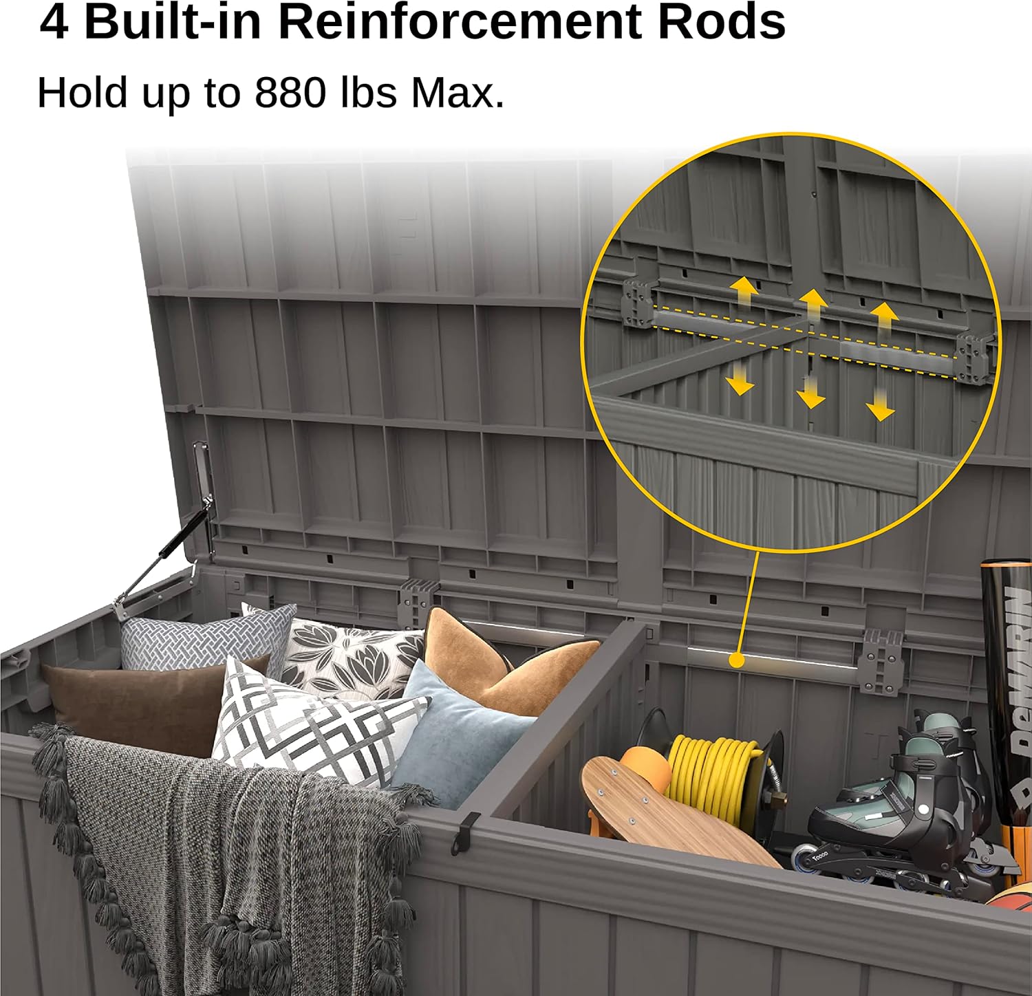 - ๐๐จ๐ฅ๐๐๐๐ ๐๐ก๐ ๐๐ข๐ก๐-๐๐๐ฆ๐ง๐๐ก๐: Crafted from weather-resistant resin, this deck box resists rust, peeling, and denting, offering greater longevity than wooden alternatives. Equipped with 4 built-in reinforcing rods, it maintains its shape even after prolonged sun exposure.