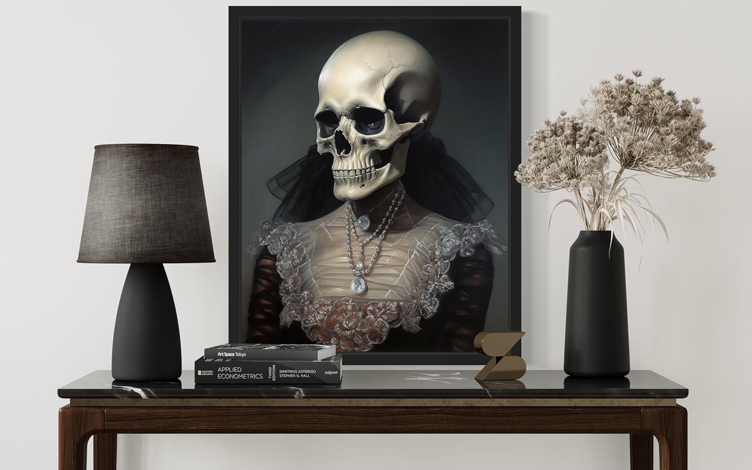 Female Skull Poster Art Print, Halloween Scary Vintage Wall Art Academia Spooky Painting Decoration for Horror Prints, Gothic Posters Bedroom Decor 89 (Female Skull, 8 x 10 inches, Black Frame)