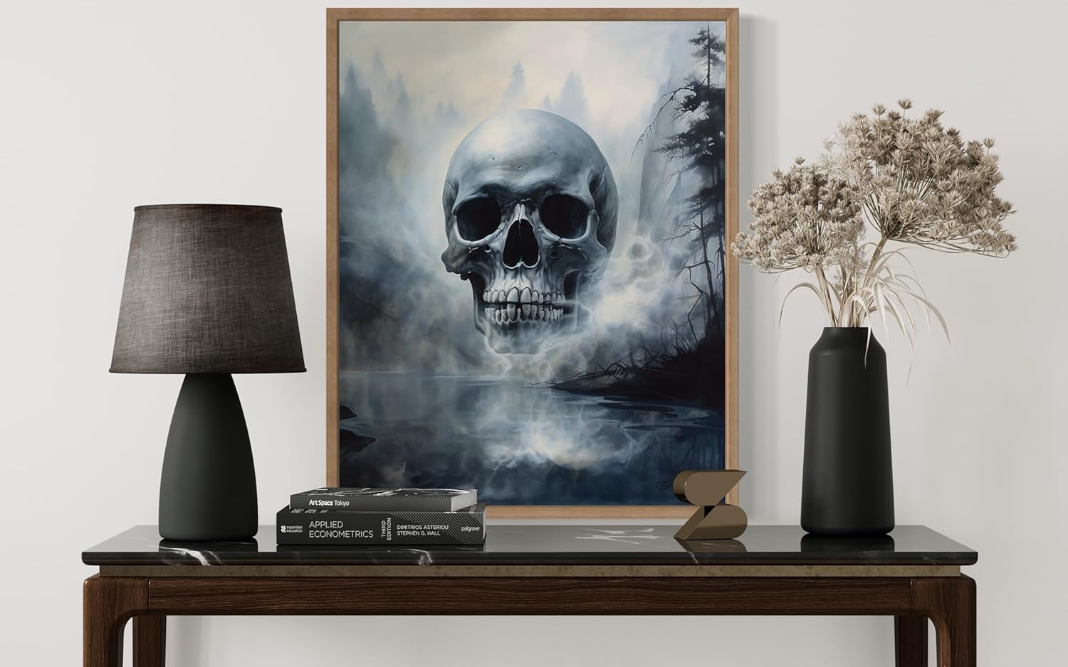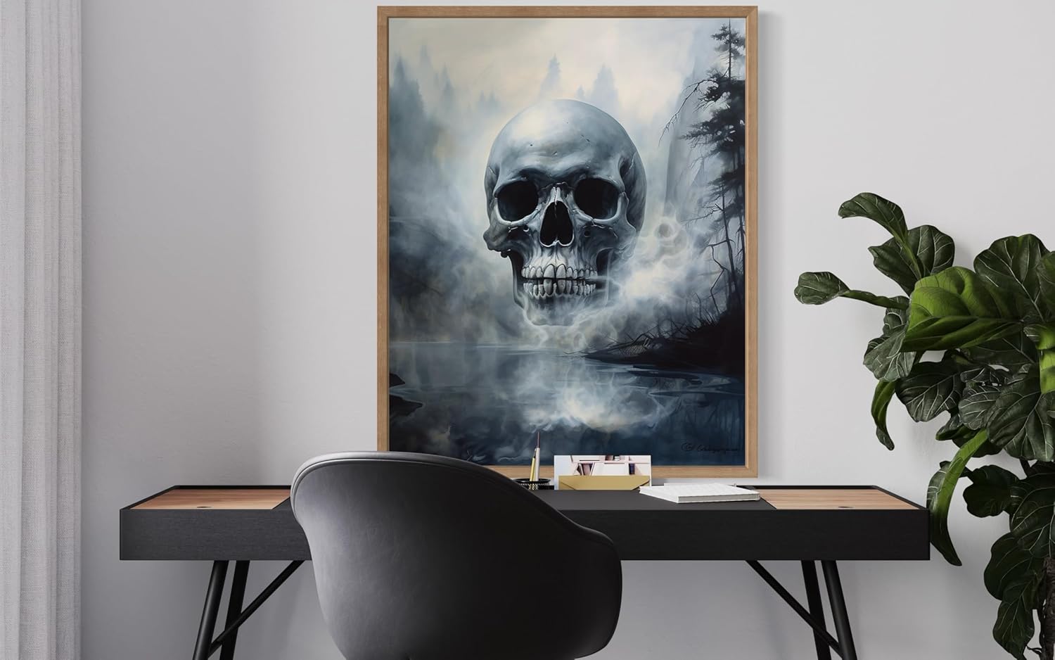 Foggy Skull Poster Art Print, Halloween Scary Vintage Wall Art Academia Spooky Painting Decoration for Horror Prints, Gothic Posters Bedroom Decor 89 (Foggy Skull, 8 x 10 inches, Wood Frame)