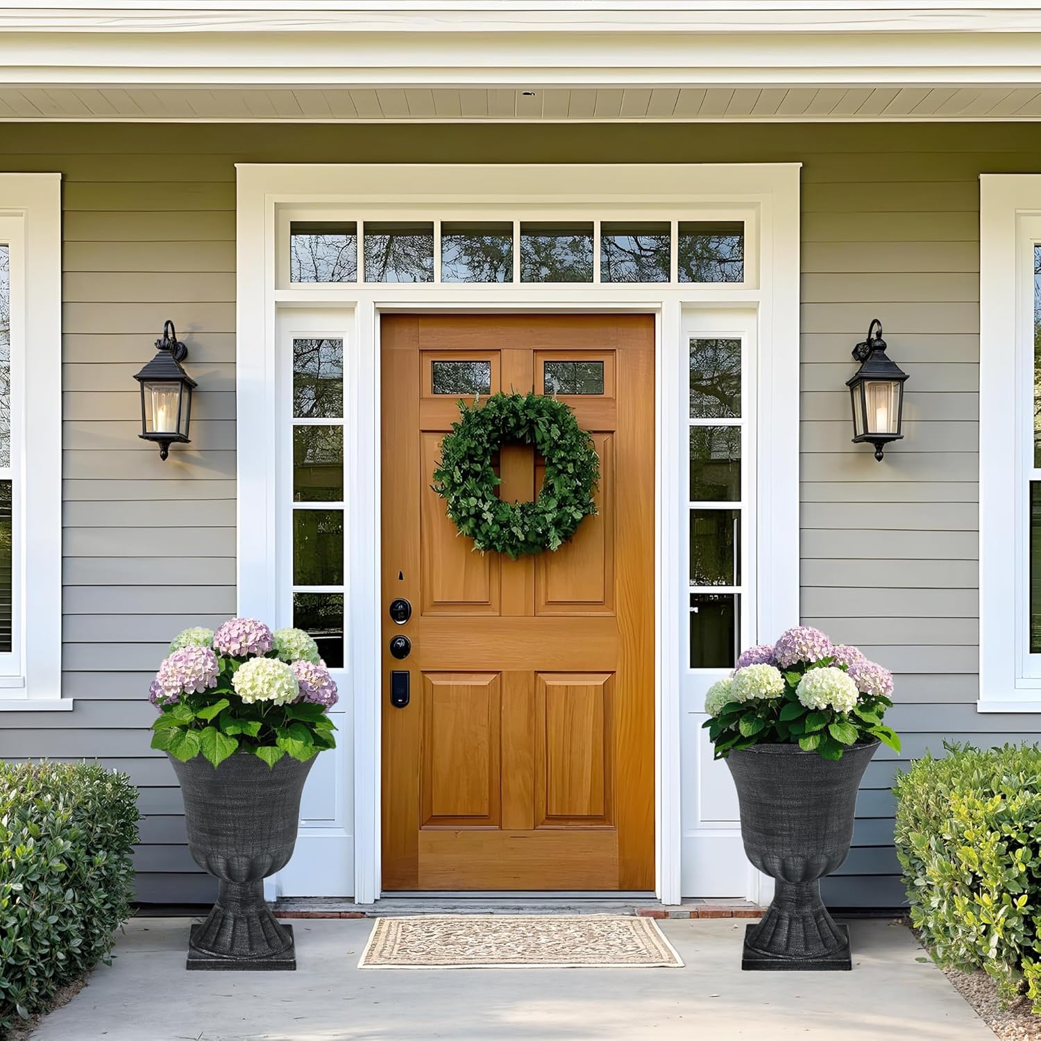 22" Large Urn Planters for Outdoor Plants, Set of 2 Plastic Flower Pot with Handmade Washed Black Finish, Weather-Resistant for Porch, Garden, Patio or Indoor Use