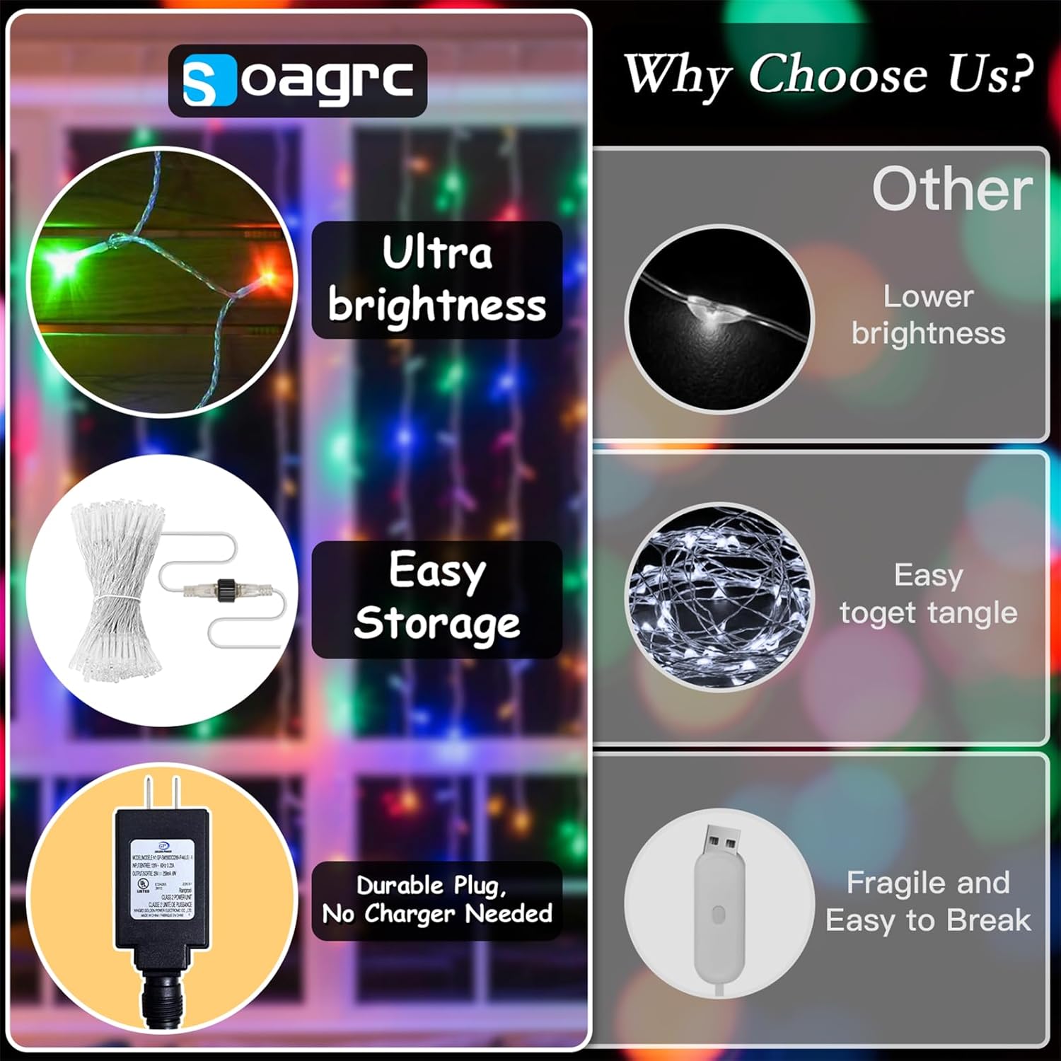 - Upgraded Durability for Everyday Use - Soagrc curtain string lights are crafted with enhanced copper wire and high-quality LEDs to ensure stronger durability. Tangle free and stable, theyโre ideal for everyday use from dressing up your bedroom wall to adding a soft glow behind your reading nook or vanity mirror