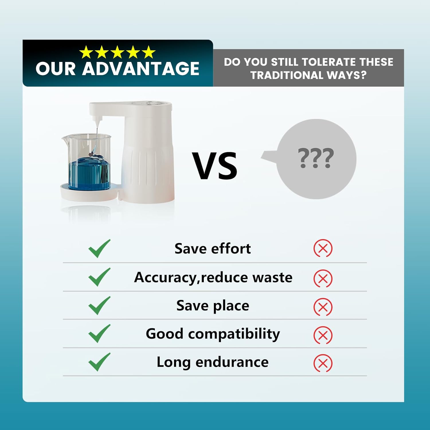 - New upgraded laundry detergent dispenser: Compared with traditional laundry detergent dispensers, this product is a smart electronic laundry detergent pump. The driving electronics can quickly draw the laundry detergent from the inlet tube into the measuring cup. The high-pressure pump provides 8 ml/s of detergent flow and has 5 adjustable modes to ensure that all wash amounts can get the best cleaning results while reducing residue and waste.