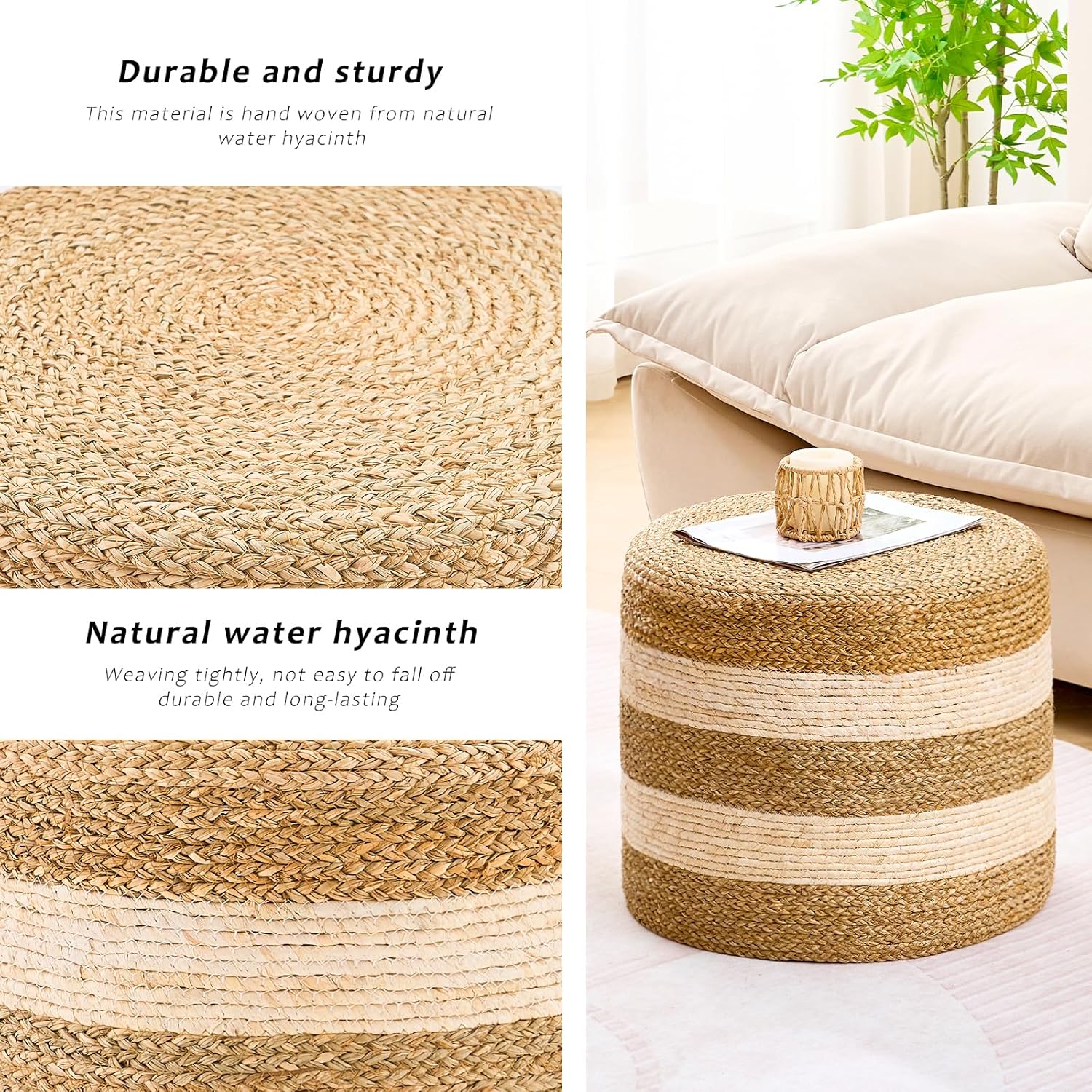 - 【Natural Water Hyacinth】Crafted from natural water hyacinth, LGENHOOM pouf brings a warm, organic look and feel to any space.