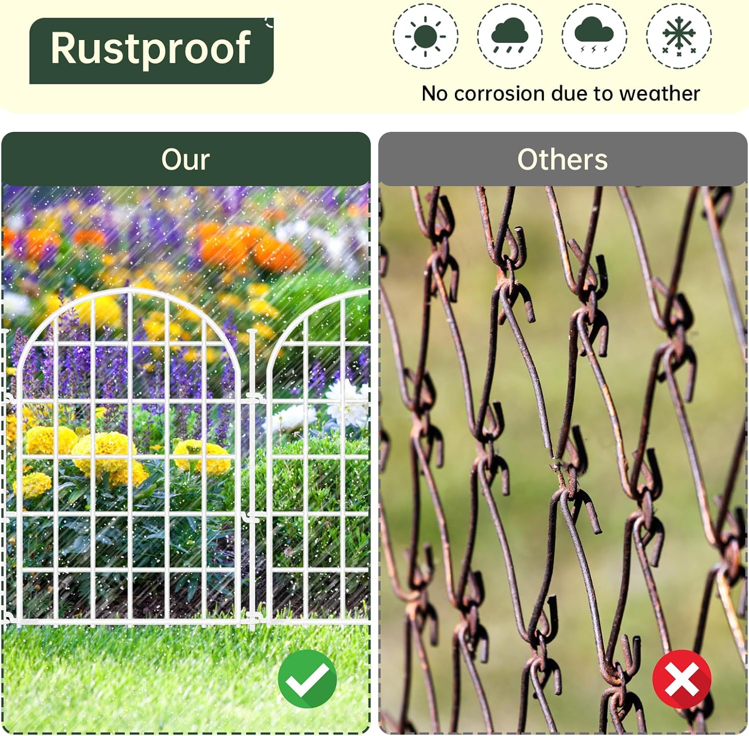 - 【5-LAYER HORIZONTAL BAR DESIGN】 Engineered with 5 reinforced horizontal bars, delivers exceptional strength, more solid, and not easy to bend, warp, and break. The gap is denser, and more effective at keeping animals out of your garden and damaging your plants. The classic arched appearance will add a touch of modern simplicity to your garden, patio and yard