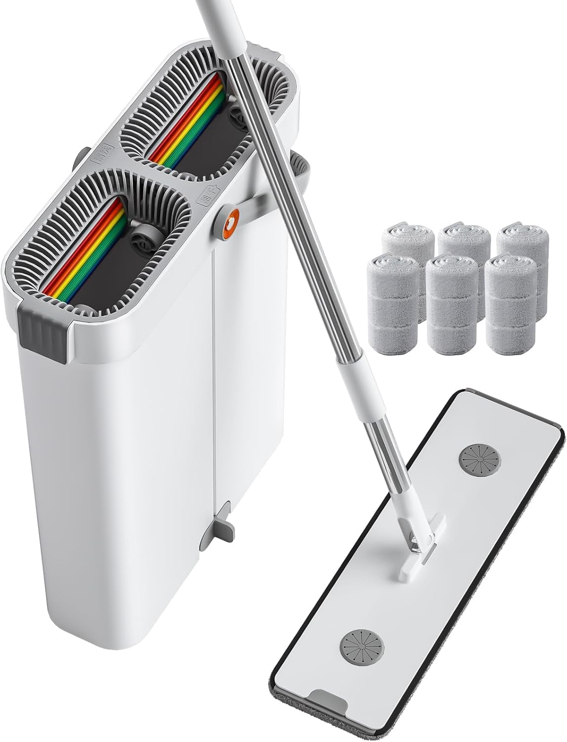 - HANDS-FREE SELF-CLEANING MOP: Our innovative mop bucket design features a built-in wringer that allows for hands-free self-cleaning. It ensures that dirt and grime are lifted away from your floors and never come back, while also preventing water splashes and keeping your floors clean and dry.