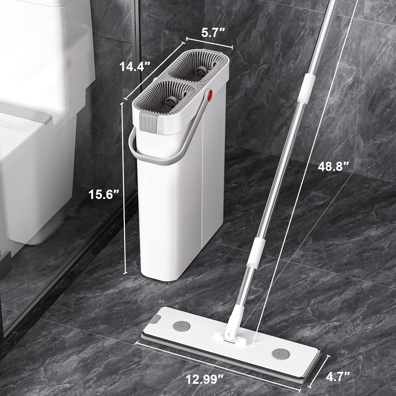 - VERSATILE CLEANING PRODUCT: The Flat Floor Mop and Bucket Set is a versatile cleaning solution that is perfect for a variety of cleaning tasks. It is ideal for home, kitchen, bathroom, office, corner, wall, and baseboard cleaning. Its compact design makes it easy to store in any corner of your home.
