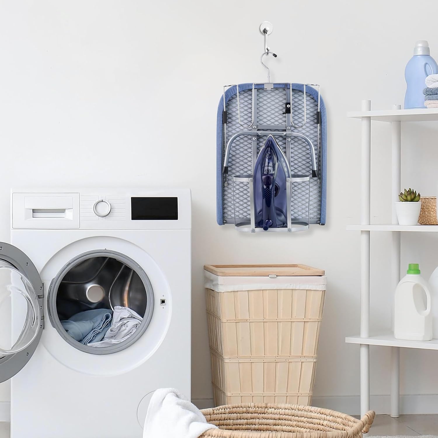 - ALL IN ONE STORAGE STABILITY- Iron and ironing board set never lose your iron again! When using a small ironing board, pulling out the iron holder can place the iron. Even if the iron is still warm after ironing, it can be placed directly in the storage basket. No more worries about storing irons
