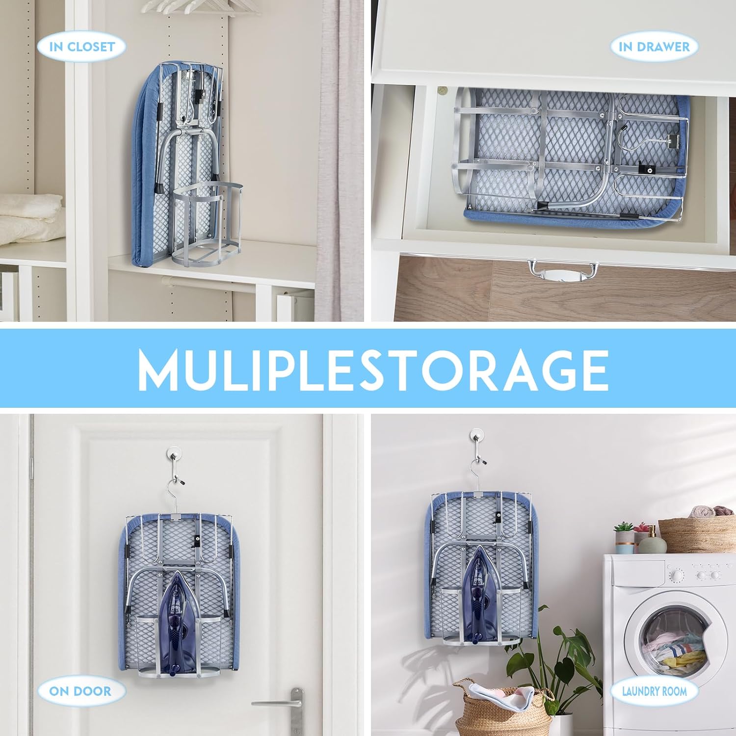 - SPACE SAVING MULTI- Scene Hero- this mini ironing board fits seamlessly into laundry rooms, dorm closets, or luggage. Its ultra-slim profile slides under beds, tucks into cabinets, or hangs vertically with the built-in elastic hook โ perfect for apartments, RVs, or hotel stays.