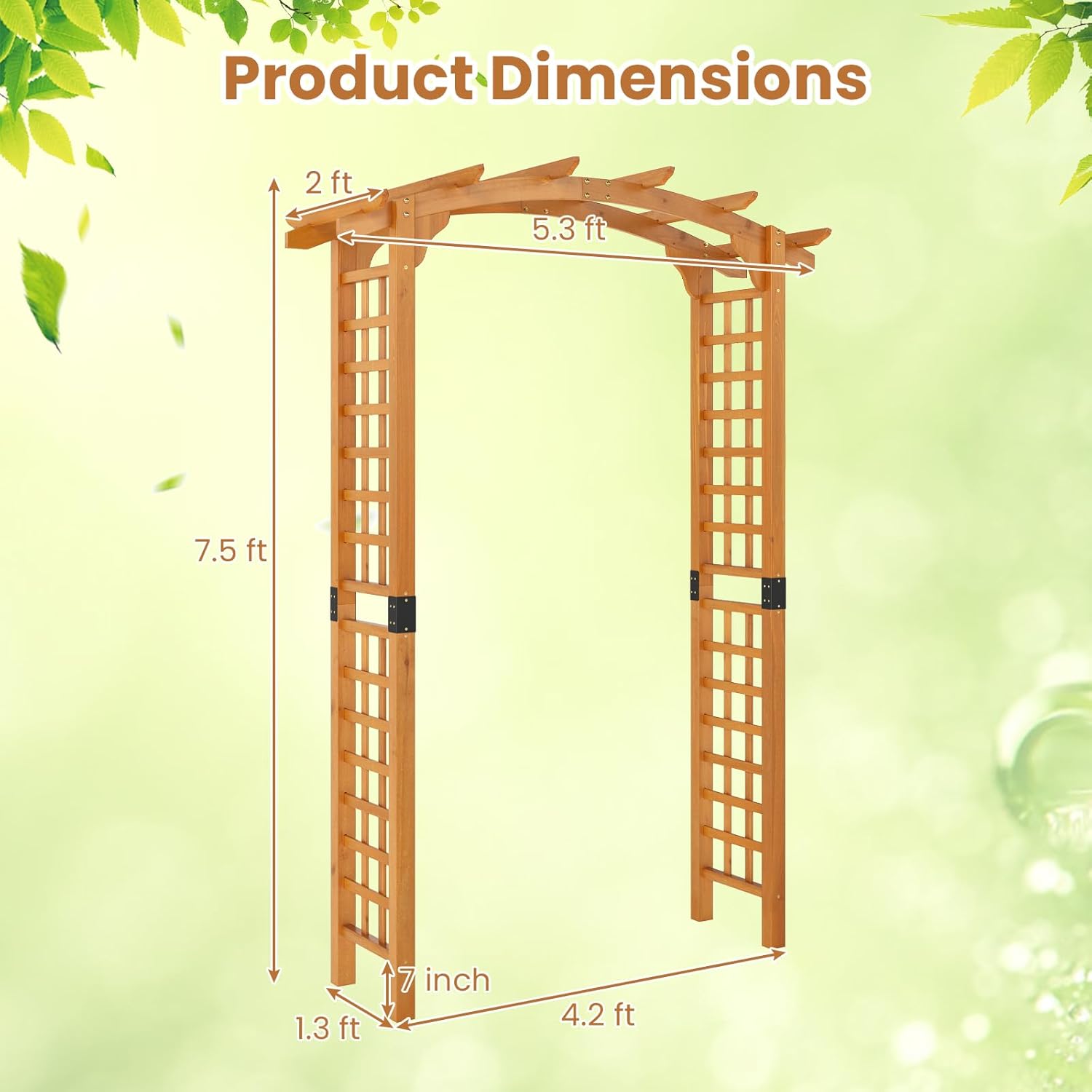 Giantex 7.5FT Wood Garden Arbor Trellis, Wooden Wedding Arch for Ceremony Party, Outdoor Archway Pergola for Climbing Plants, Pathway, Yard, Garden Decor, Easy Assembly (Honey Brown, 63''W x 90''H)