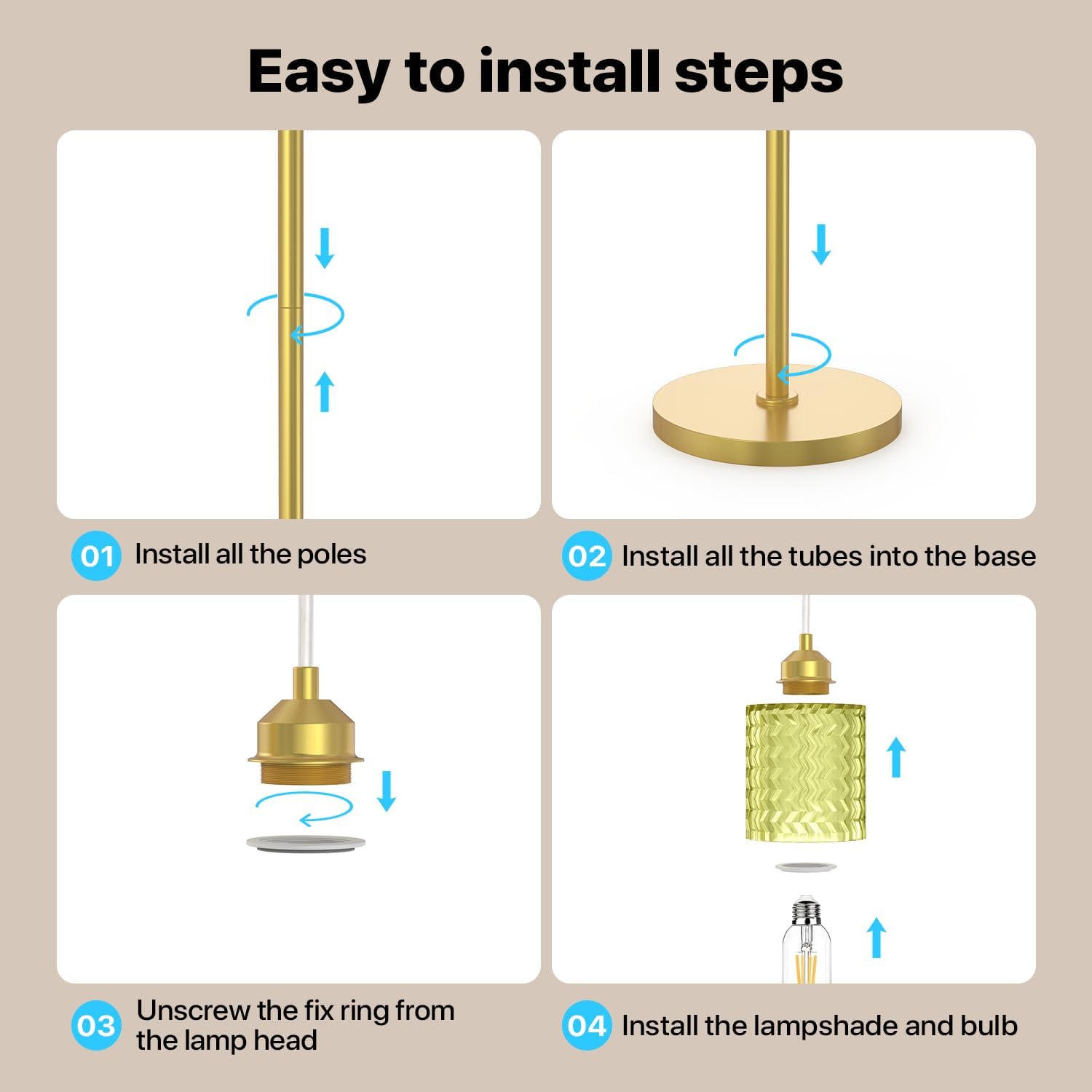 - Ready - to - Use Convenience:This crystal floor lamp comes with 3 matching E26 bulbs, saving you the trouble of extra purchases. Simply install it right after receiving the lamp and start enjoying it quickly โ so you can effortlessly brighten up your daily life