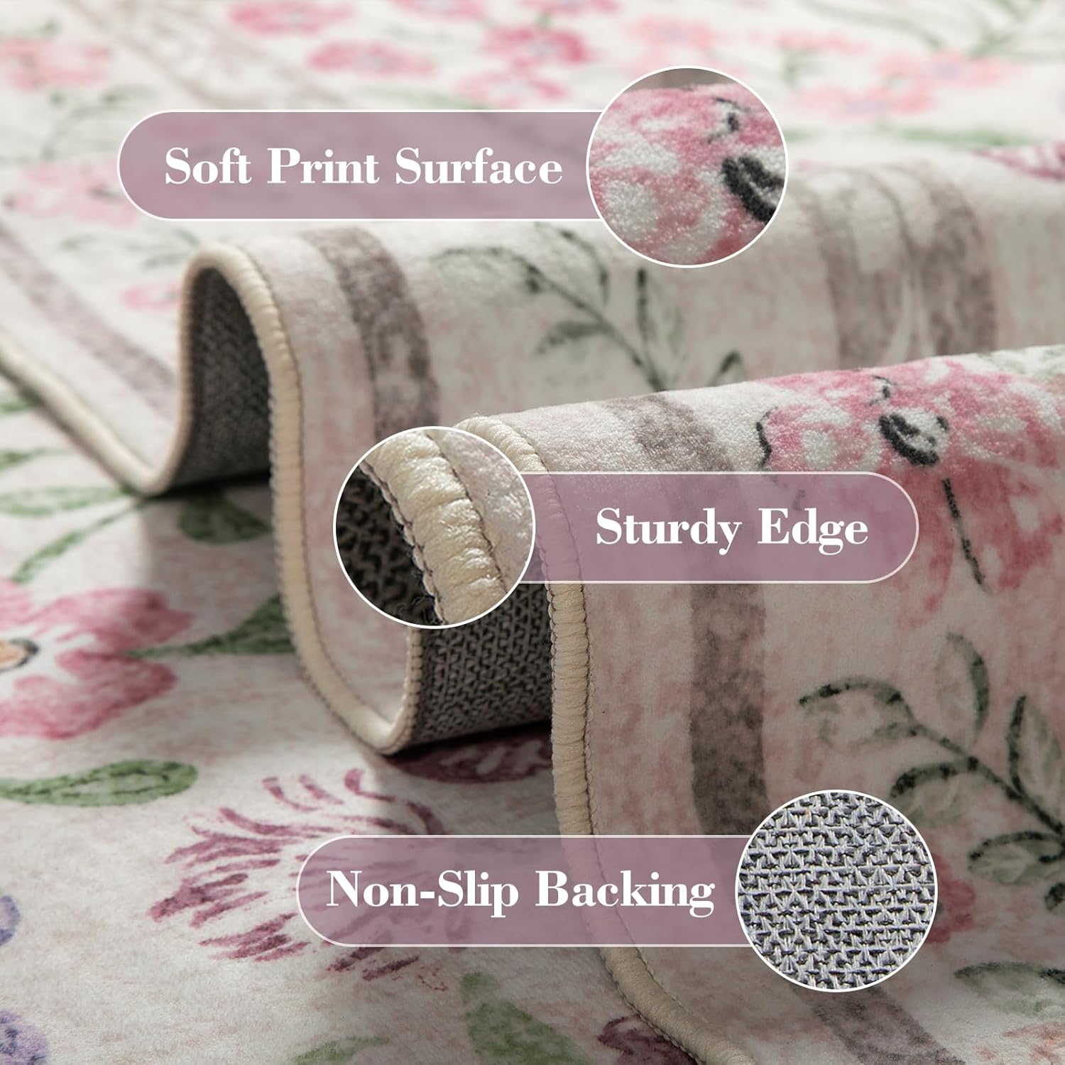 - Effortlessly Cozy Up Your Space: Whether you’re creating a pretty focal point in living room, adding a sweet touch to a kid’s space, or setting a serene mood by your bed, this purple floral rug lends that "just-right" finishing touch to elevate your space